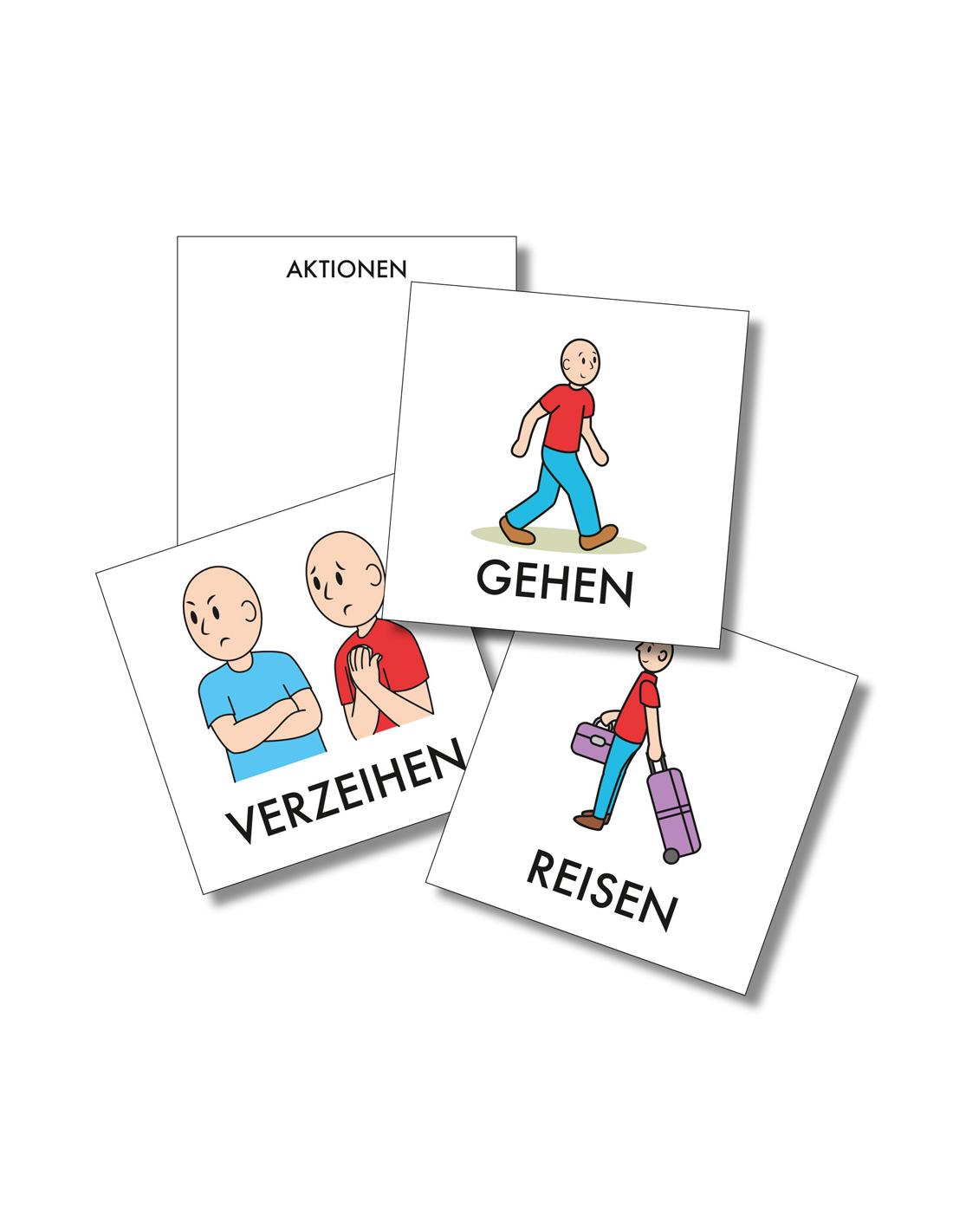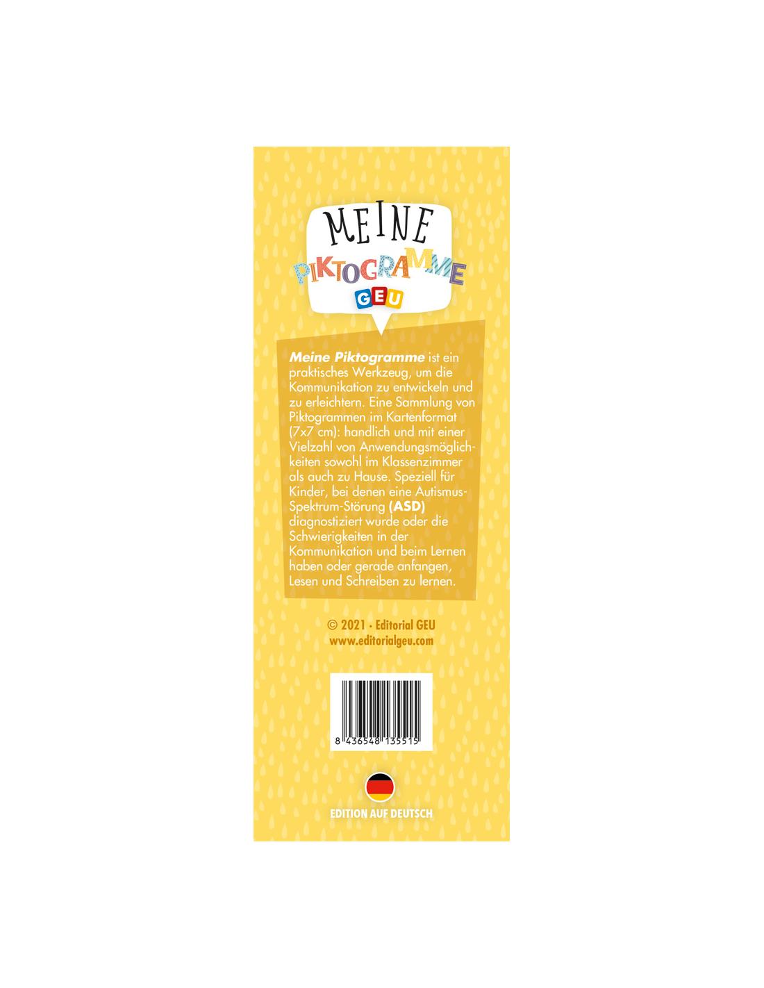 Una recopilación de pictogramas en formato tarjeta de 7 x 7 cm (tamaño estándar), letra mayúscula, manejable y con multitud de usos y aplicaciones individuales y grupales para aprender alemán.