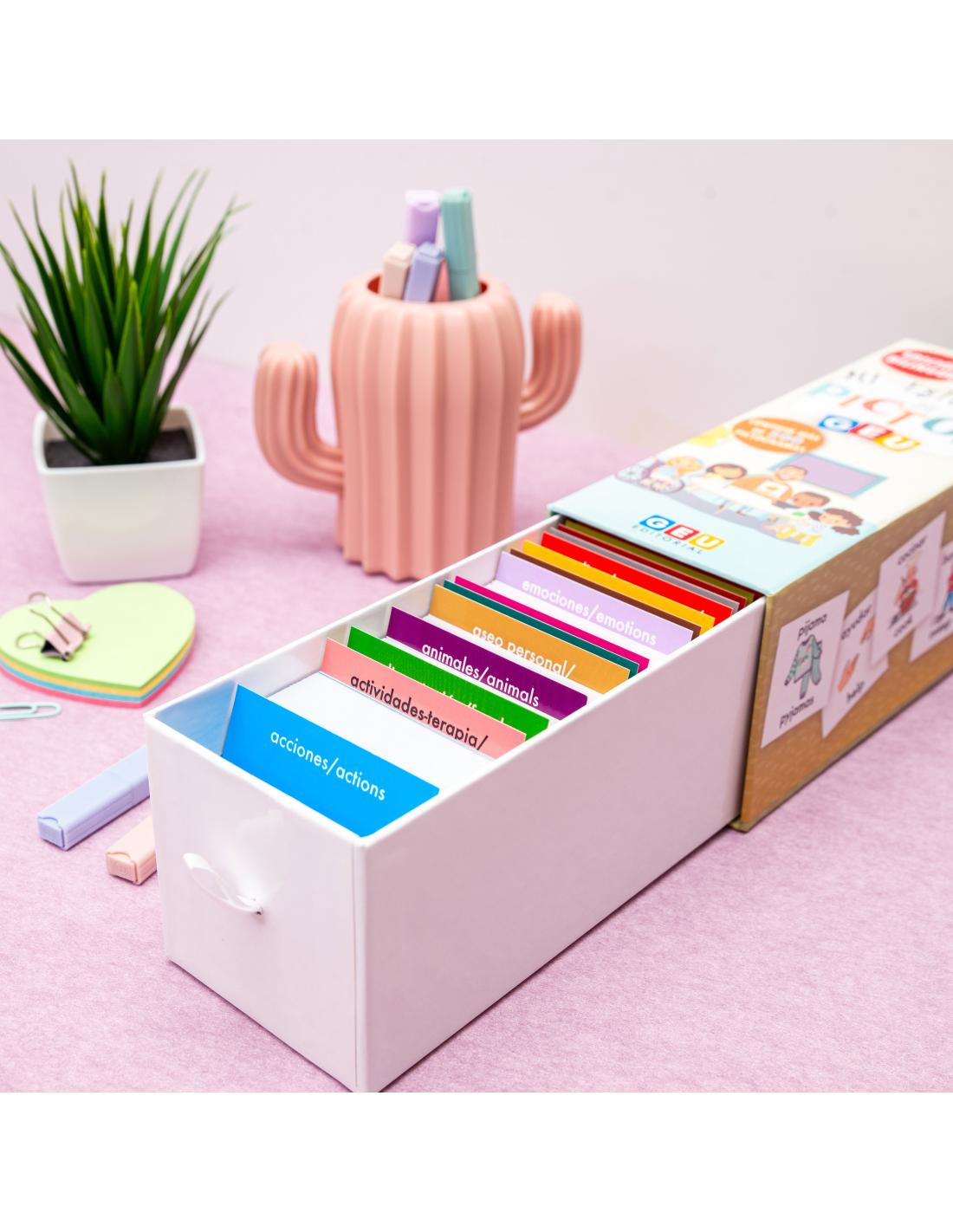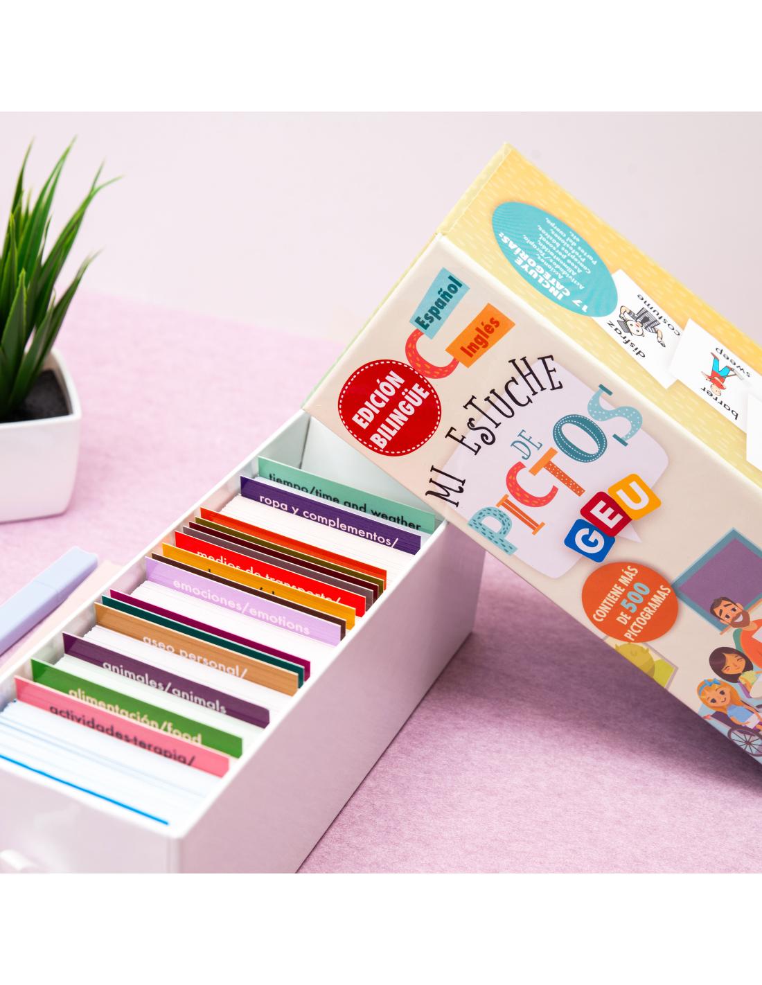 El Juego Educativo de MI ESTUCHE DE PICTOS BILINGÜE está diseñado con la inclusión en mente, este juego está especialmente creado para niños con autismo, utilizando pictogramas autismo español que fomentan la comunicación y comprensión.