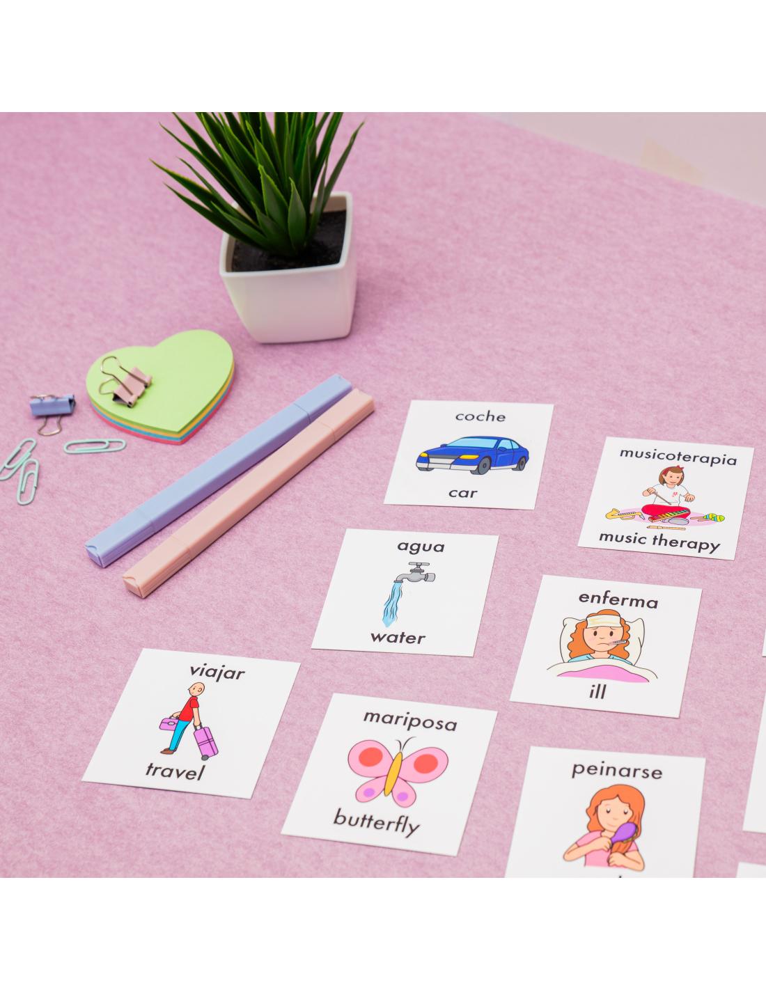 Ideal para niños a partir de 3 años, este juego interactivo no solo enseña vocabulario en español e inglés, sino que también promueve el desarrollo cognitivo, lingüístico y emocional de manera lúdica y estimulante. Además, nuestro estuche de pictos bilingüe facilita el transporte y almacenamiento, siendo el complemento perfecto para el aprendizaje en cualquier lugar.