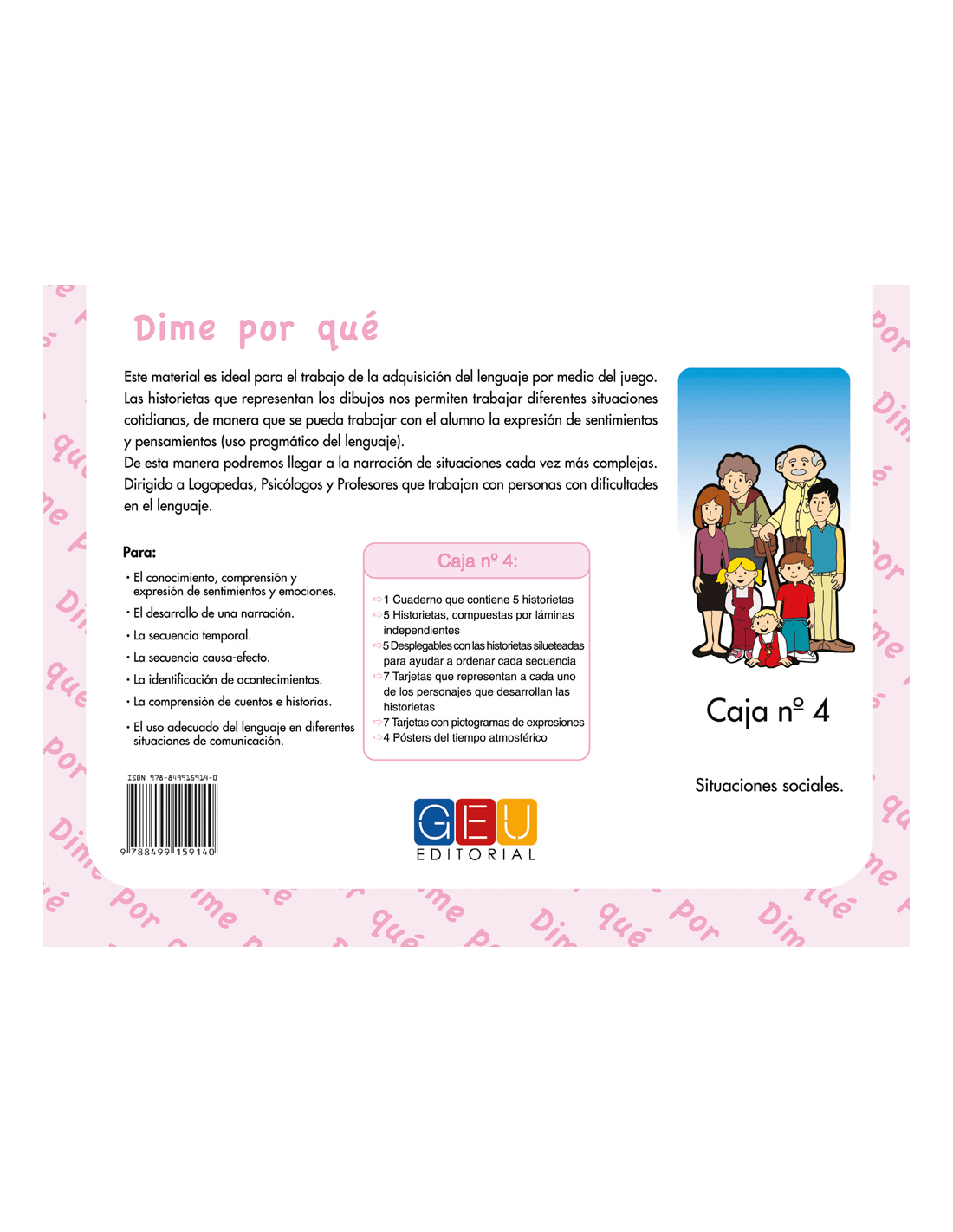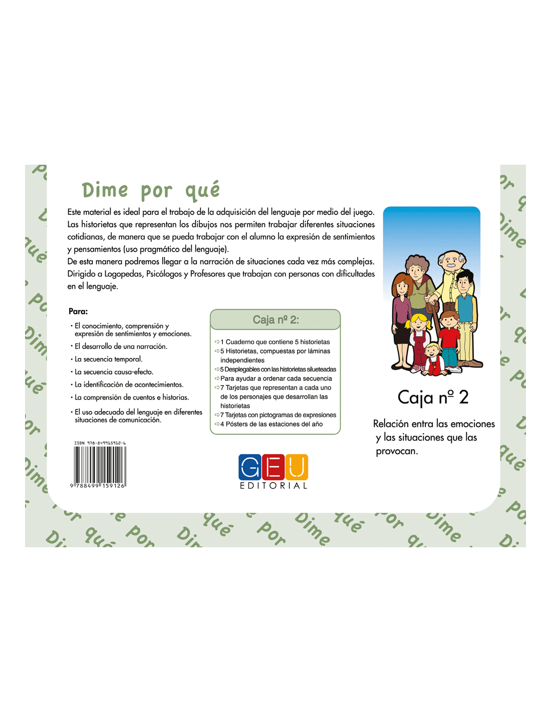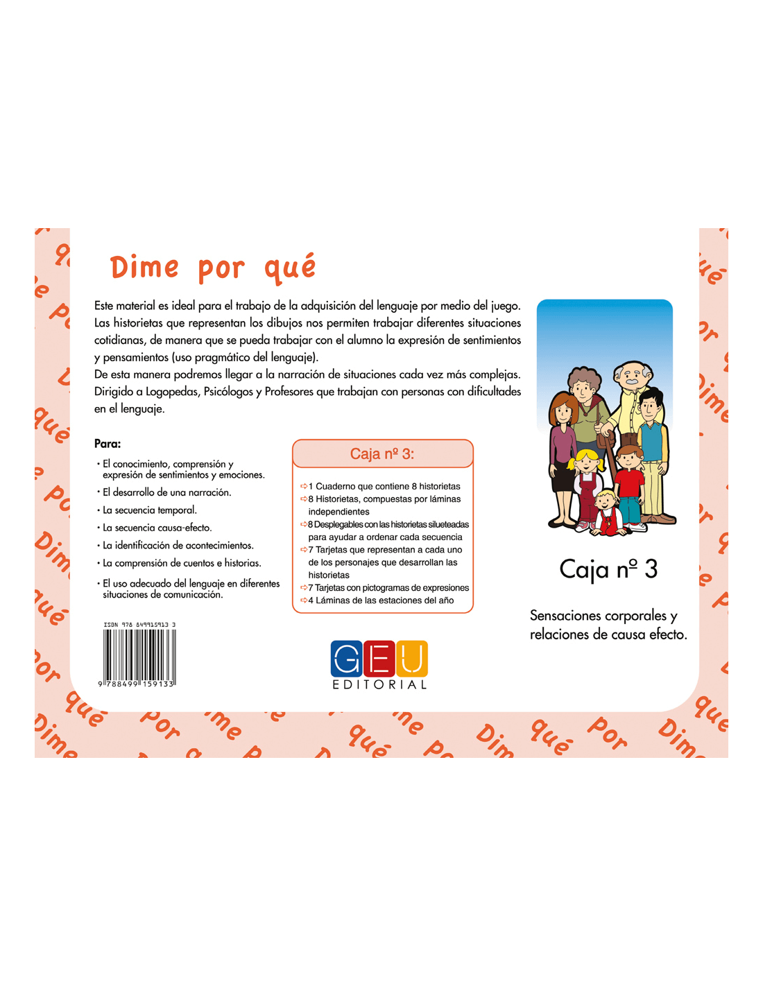 Dime por qué. Colección completa es el material por excelencia para trabajar la adquisición del lenguaje y mejorar la comprensión en los más pequeños, sus historietas en tarjetas a todo color permiten desarrollar diferentes situaciones cotidianas, con actividades que les permiten identificar y comprender fácilmente la relación causa-efecto de lo sucedido.