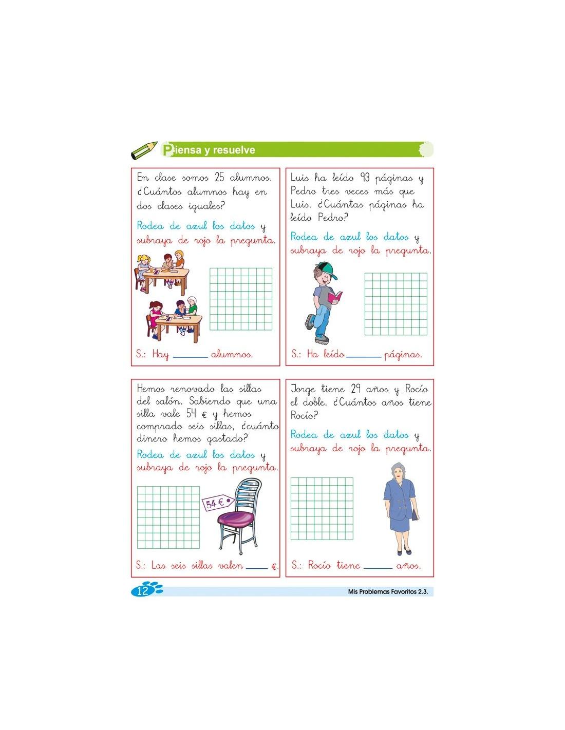 Mis problemas favoritos 2.3 forma parte de una colección compuesta por 18 cuadernos de actividades, diseñados en una secuencia progresiva de 1º a 6º de Primaria.