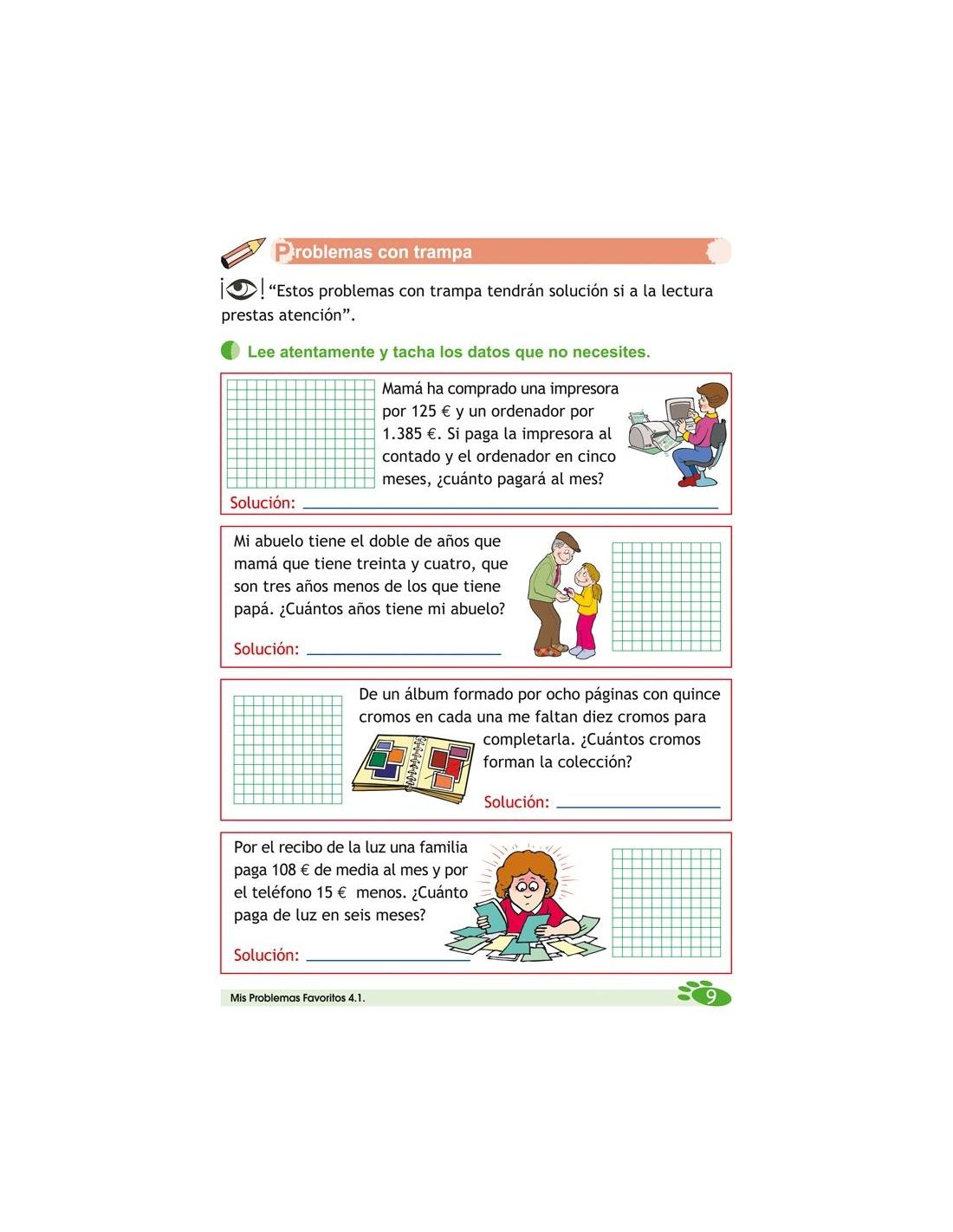 Mis problemas favoritos 4.1 forma parte de una colección compuesta por 18 cuadernos de actividades, diseñados en una secuencia progresiva de 1º a 6º de Primaria.