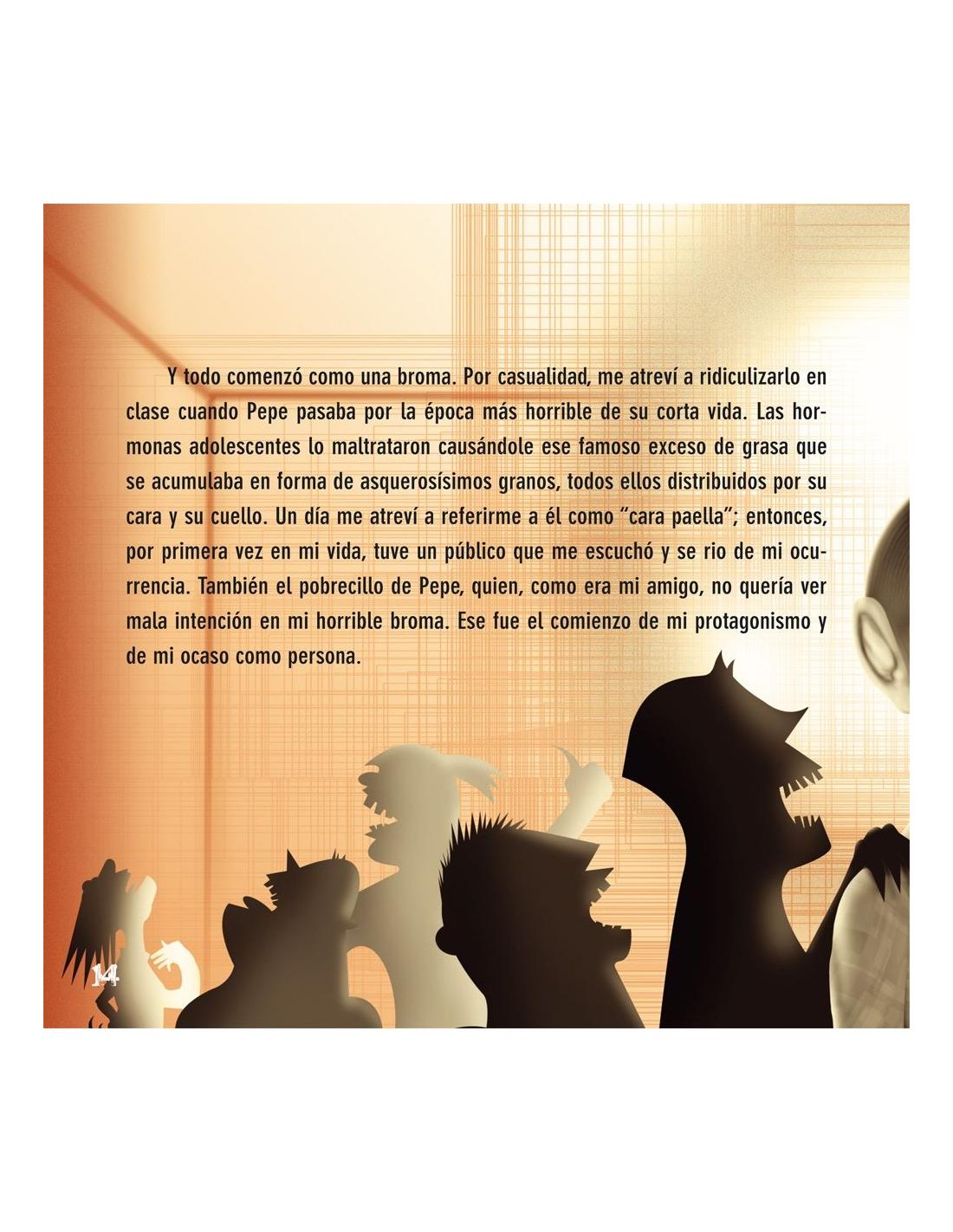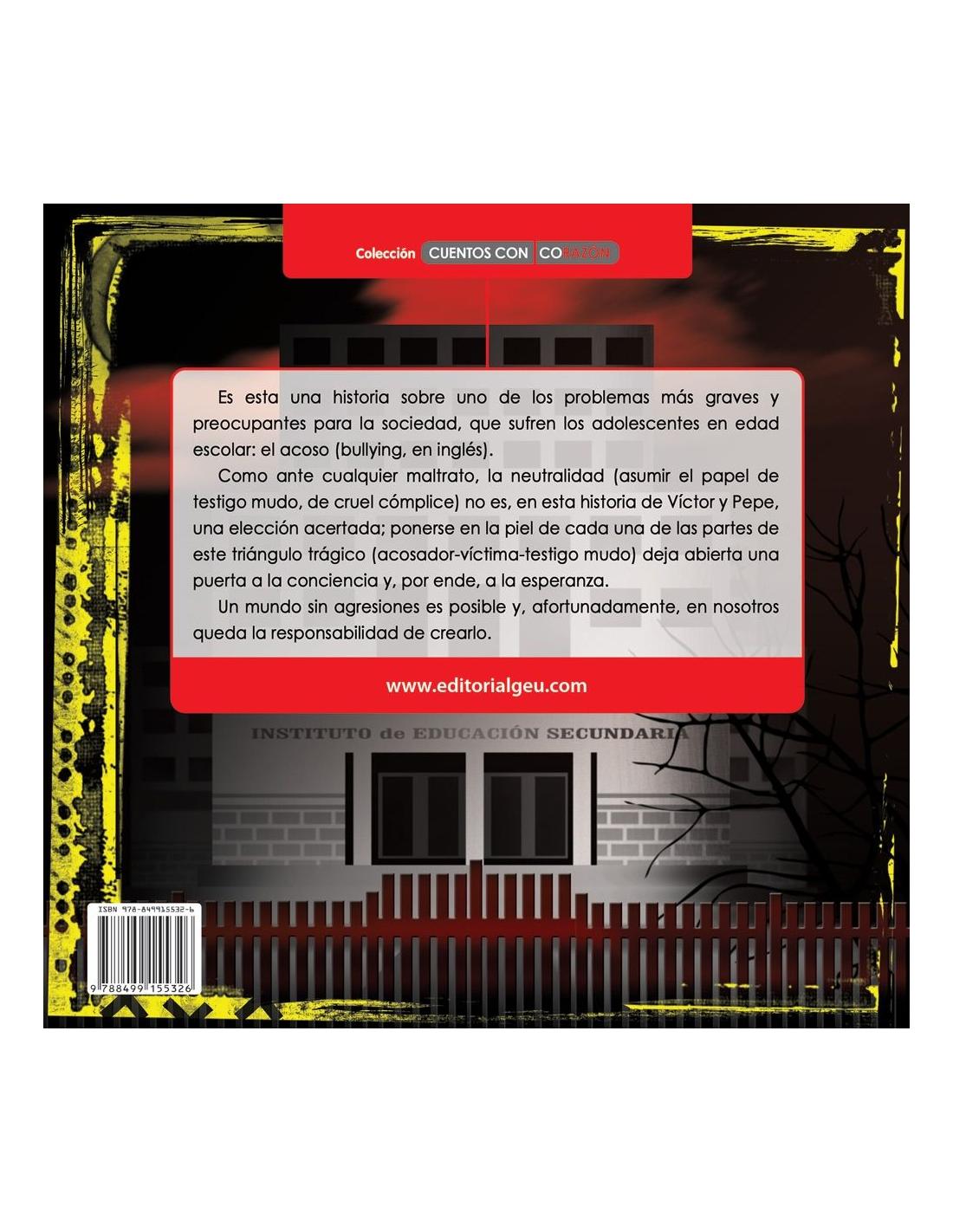 Es esta una historia sobre uno de los problemas más graves y preocupantes para la sociedad, que sufren los adolescentes en edad escolar: el acoso (bullying, en inglés) Como antes cualquier maltrato, la neutralidad (asumir el papel de testigo mudo, de cruel cómplice) no es, en esta historia de Víctor y Pepe, una elección acertada; ponerse en la piel de cada una de las partes de este triángulo trágico (acosador - víctima - testigo mudo) deja abierta una puerta a la conciencia y, por ende, a la esperanza. Un mundo sin agresiones es posible y, afortunadamente, en nosotros queda la responsabilidad de crearlo.