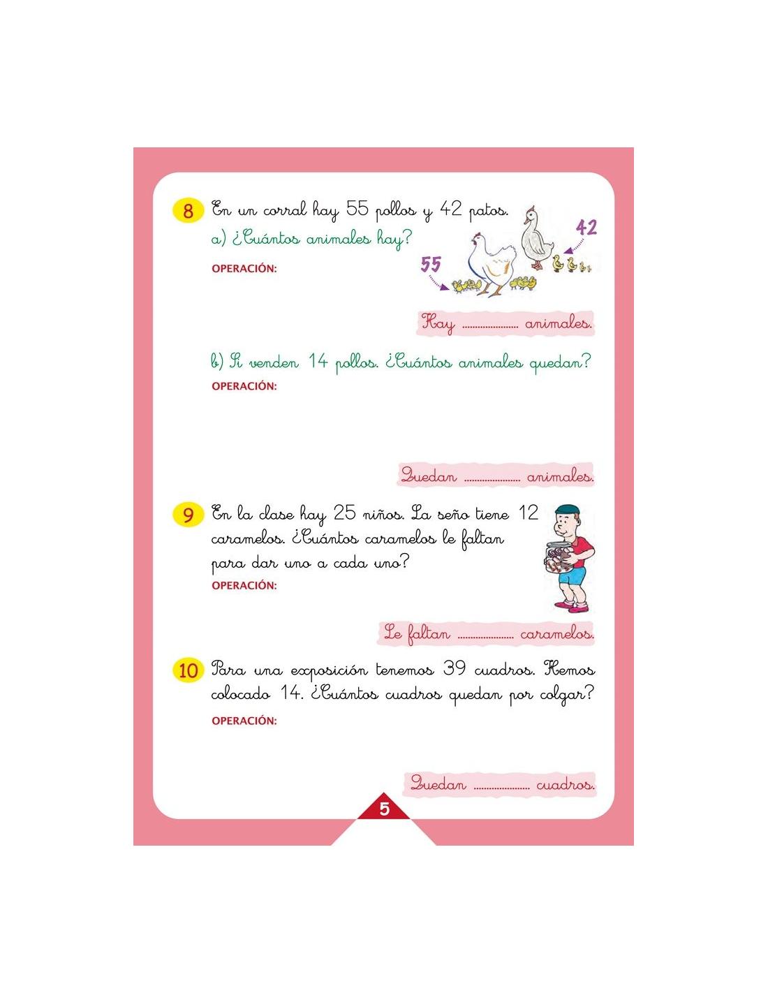 Orientado a 1º de Educación Primaria. Favorece la comprensión en las actividades a través de problemas presentes en la vida real; perfecto como material de repaso y refuerzo.