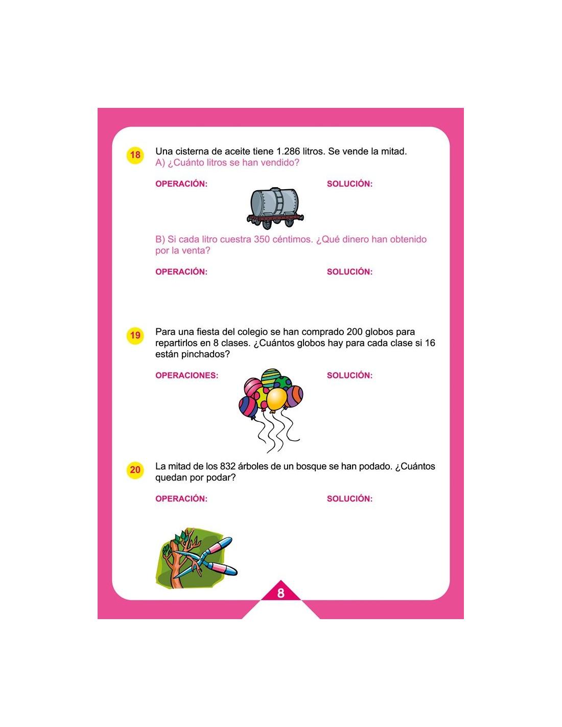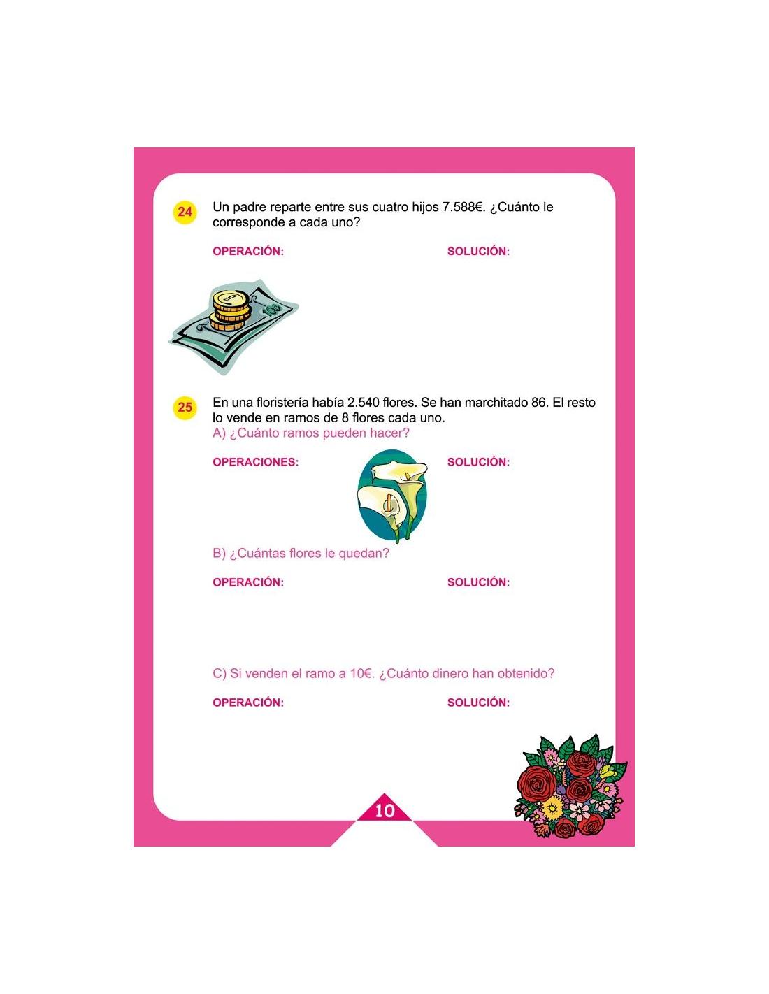 Orientado a 4º de Educación Primaria. Favorece la comprensión en las actividades a través de problemas presentes en la vida real; perfecto como material de repaso y refuerzo.