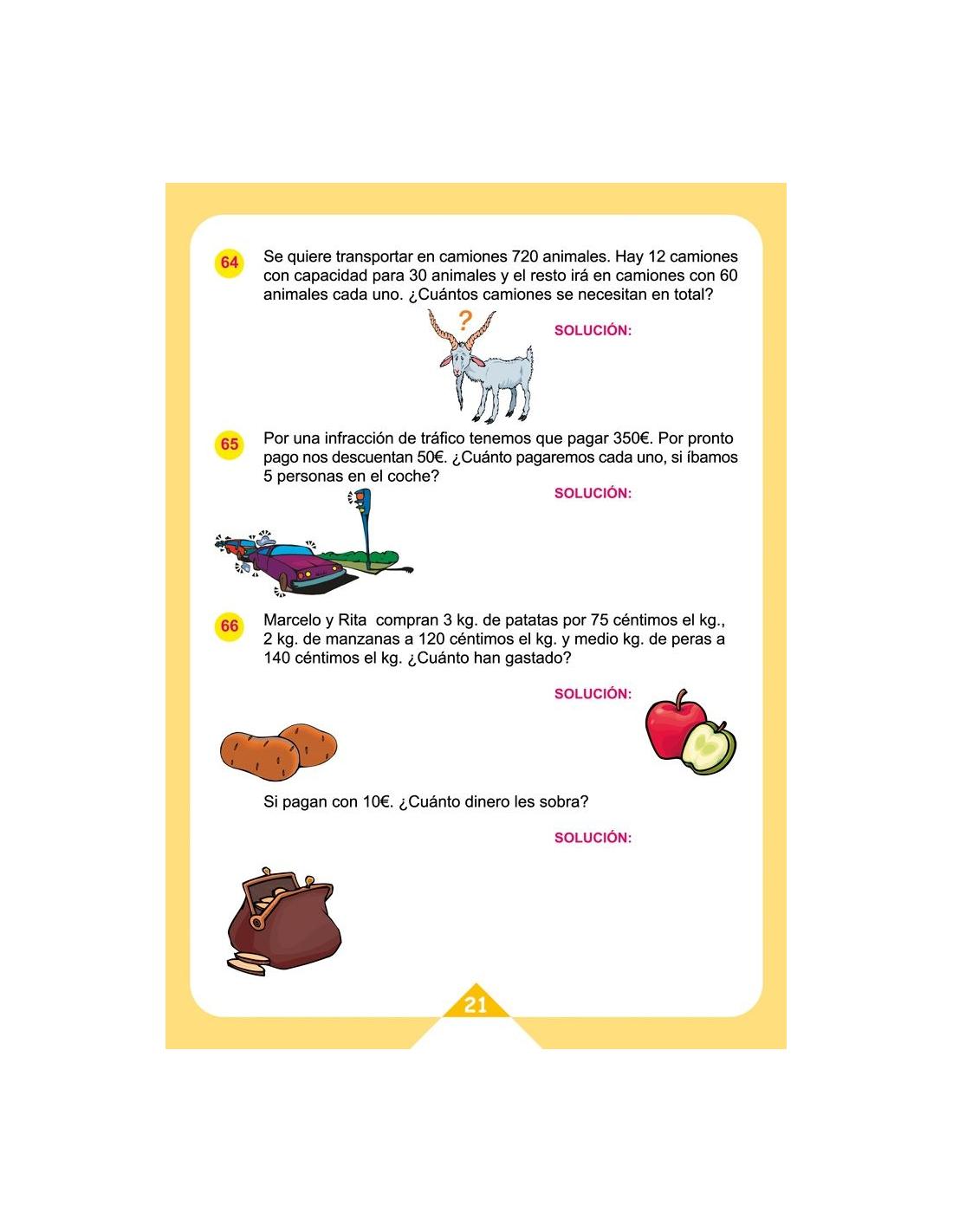 Orientado a 4º de Educación Primaria. Favorece la comprensión en las actividades a través de problemas presentes en la vida real; perfecto como material de repaso y refuerzo.