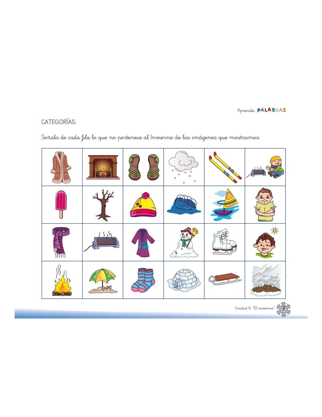 ★ Señalar de cada fila lo que no pertenece al invierno.