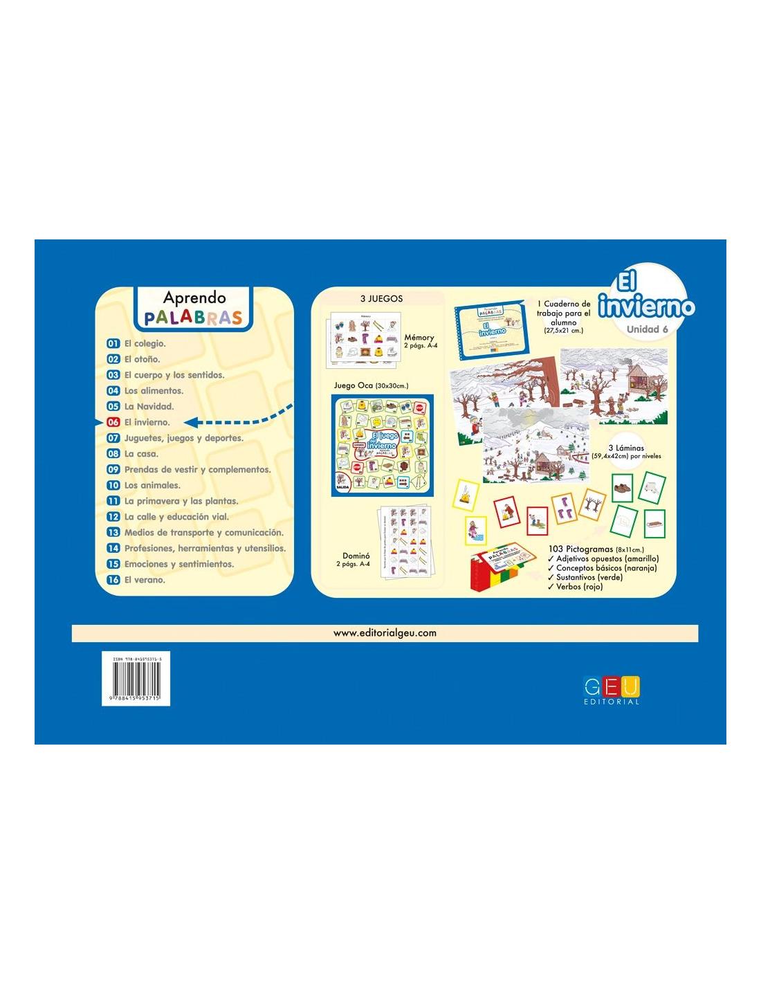 Aprendo palabras 6. El invierno forma parte de la colección Aprendo Palabras, un novedoso material que trabaja el aspecto léxico-semántico y morfosintáctico del lenguaje oral, tanto a nivel comprensivo como expresivo.