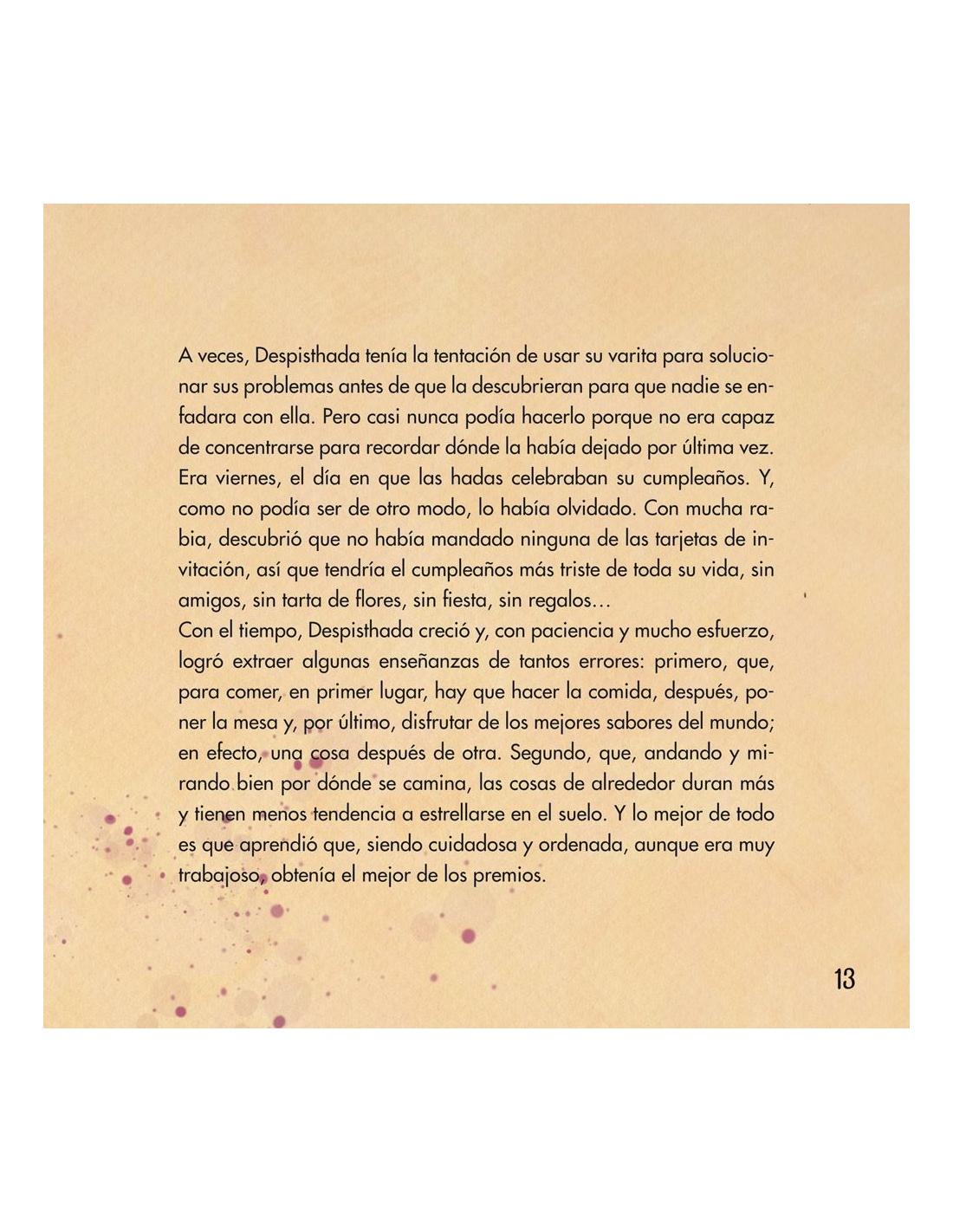 Protagonizado por DespistHada, una joven hada que, junto a su amigo Orión, vive una aventura fantástica y misteriosa. El cuento busca educar a los niños en la paciencia, la comprensión y las muestras de amor y amistad que, como varitas mágicas, ayudarían a los demás a sentirse más seguros y, por tanto, a descubrir cuánta magia y fuerza interior atesoran sin saberlo.