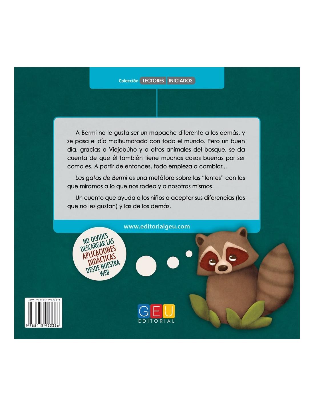 Narra una historia en un bosque donde conviven gran variedad de animales en armonía hasta que un día nace un animal diferente. Descubre como el mapache Bermi no es como los demás porque tiene gafas de color rojo y como sus padres lo ayudan para que entienda que ser diferente es algo maravilloso.