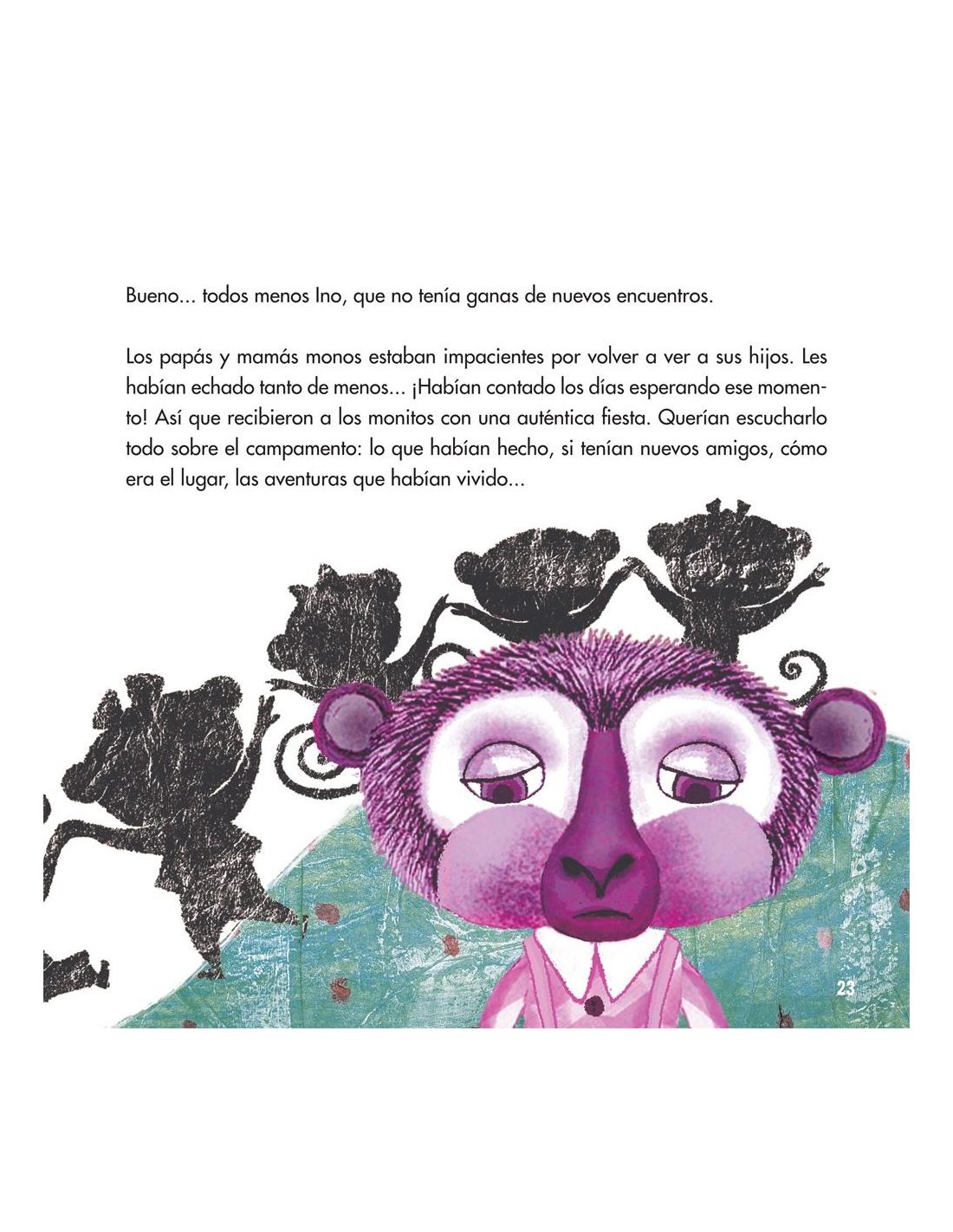 El cuento La asamblea de los monos cuenta la historia de un joven monito llamado Ino, que viaja con sus amigos durante las vacaciones a un campamento de verano.