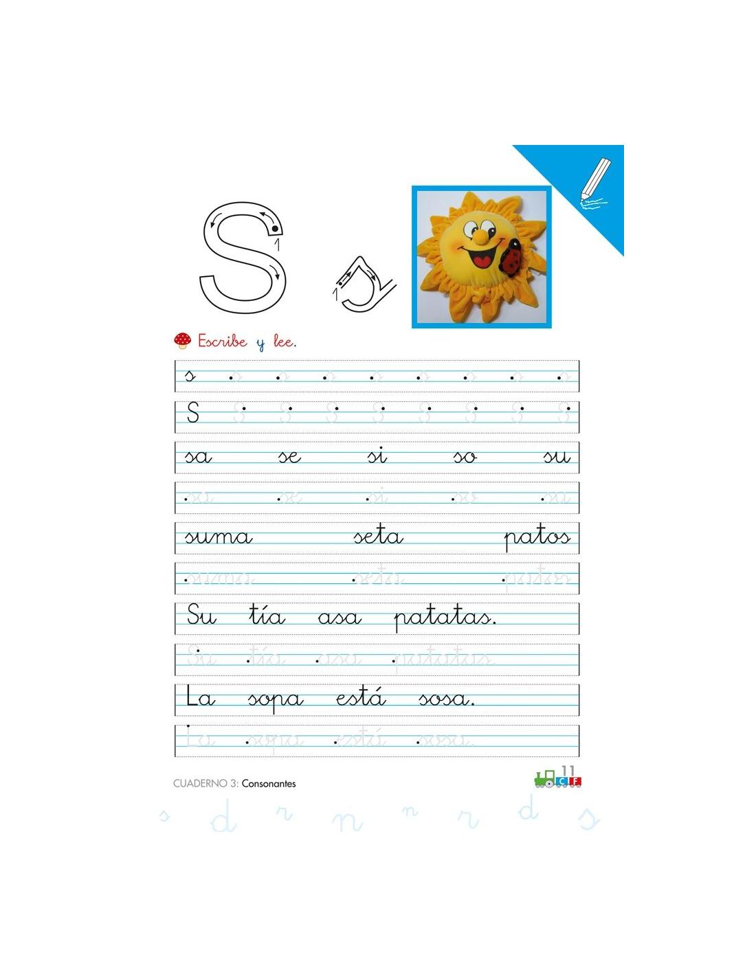 En este cuaderno se trabajan actividades con las consonantes s, r, n, d.