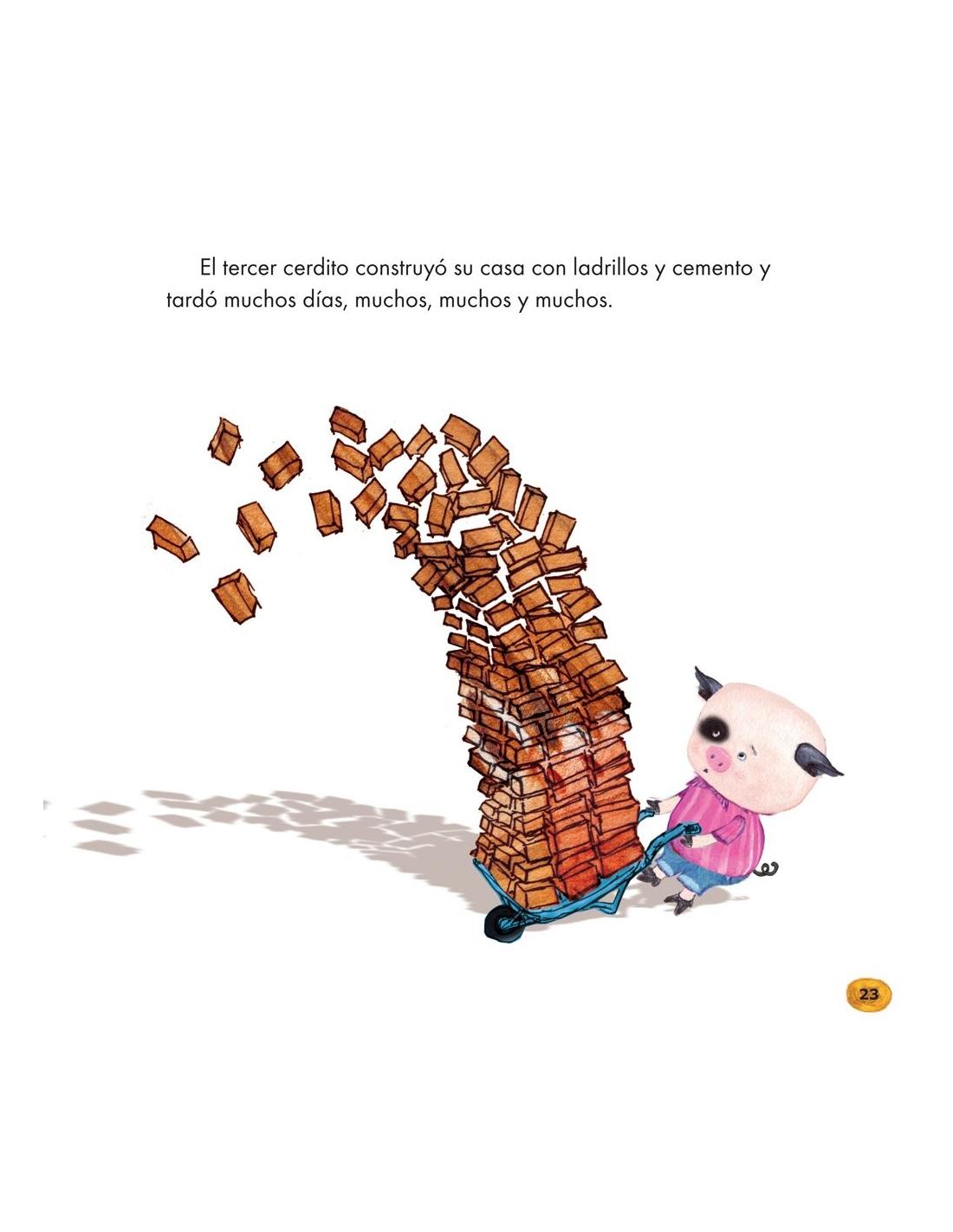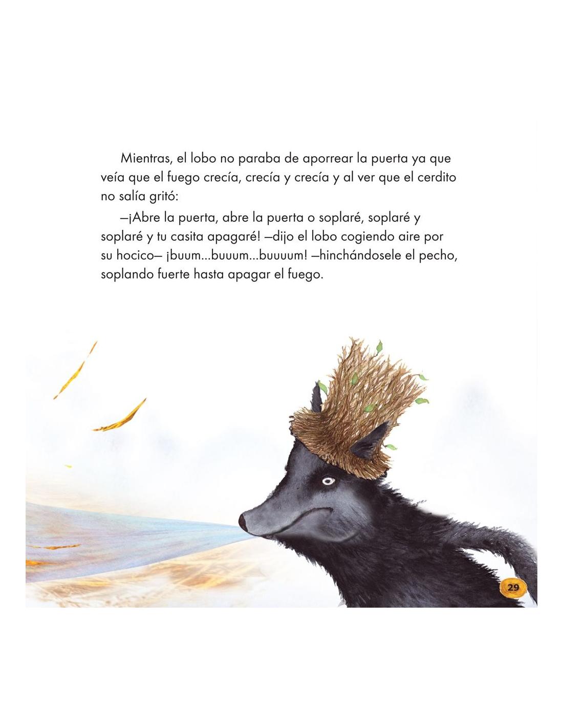 Descubre esta nueva versión del conocido clásico donde nada es lo que parece y el lobo cuenta como intenta ayudar a los cerditos a apagar un terrible incendio que comienza en una de sus casas.
