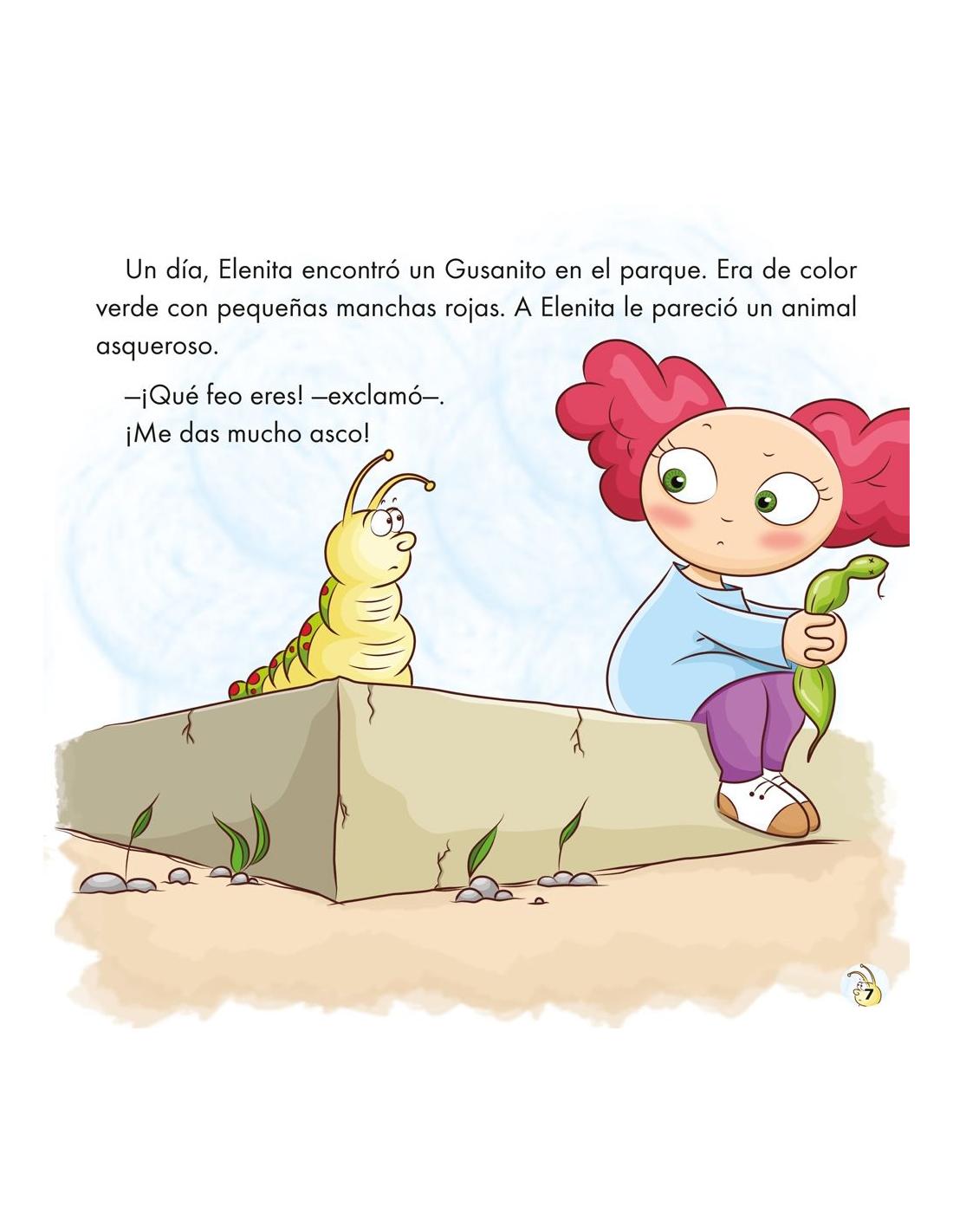Elenita y el gusanito es un cuento de la colección Mundo Sano, esta colección enseña valores para tener una vida sana y hábitos de vida saludables mediante divertidas y fascinantes historias.