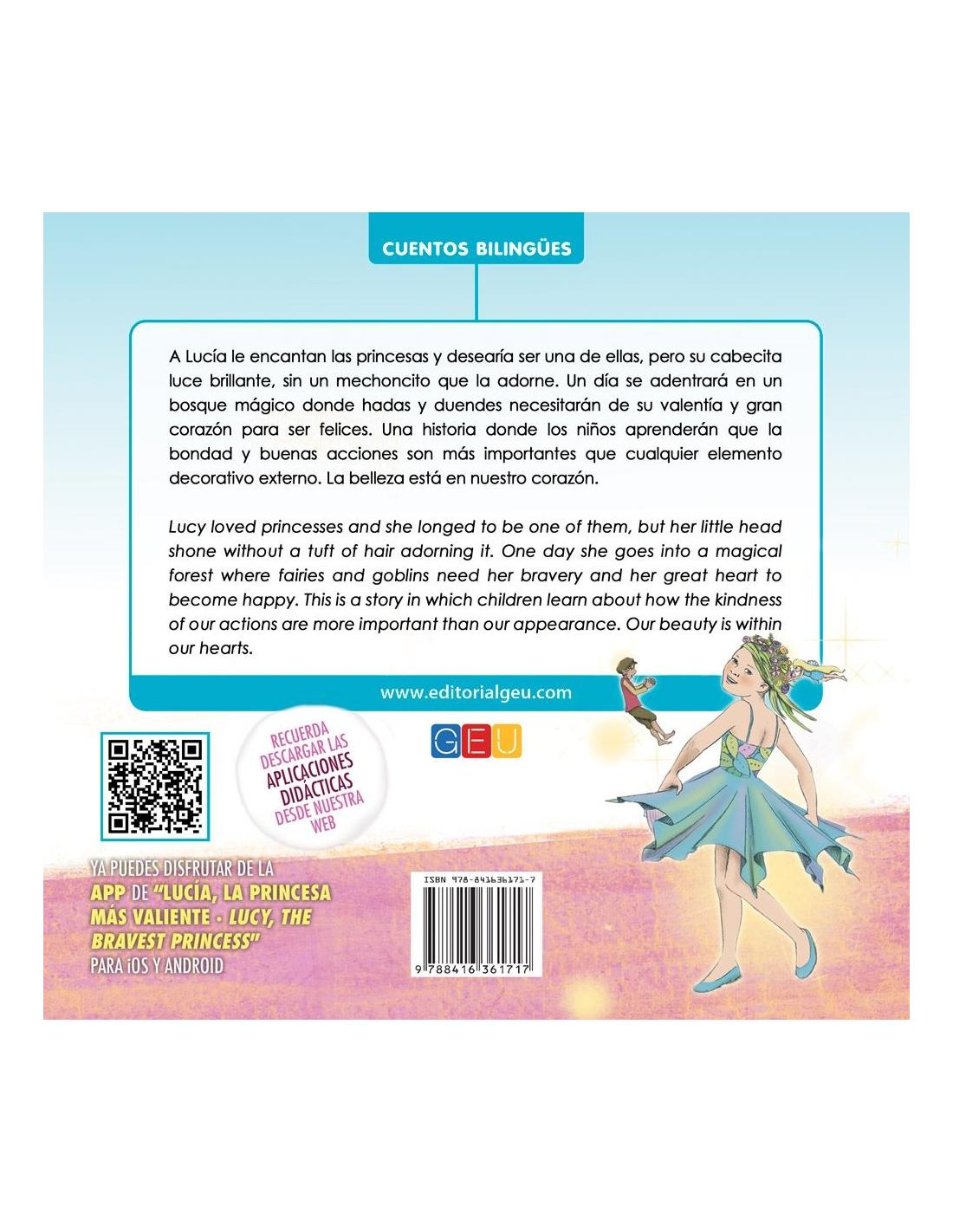 Atrévete a descubrir esta bella y mágica historia que narra como a Lucía le encantan las princesas y desea ser una de ellas pero su cabecita luce sin un mechoncito de pelo hasta que un día, se adentra en un bosque mágico donde hadas y duendes necesitarán de su valentía y gran corazón para restaurar la paz del bosque.