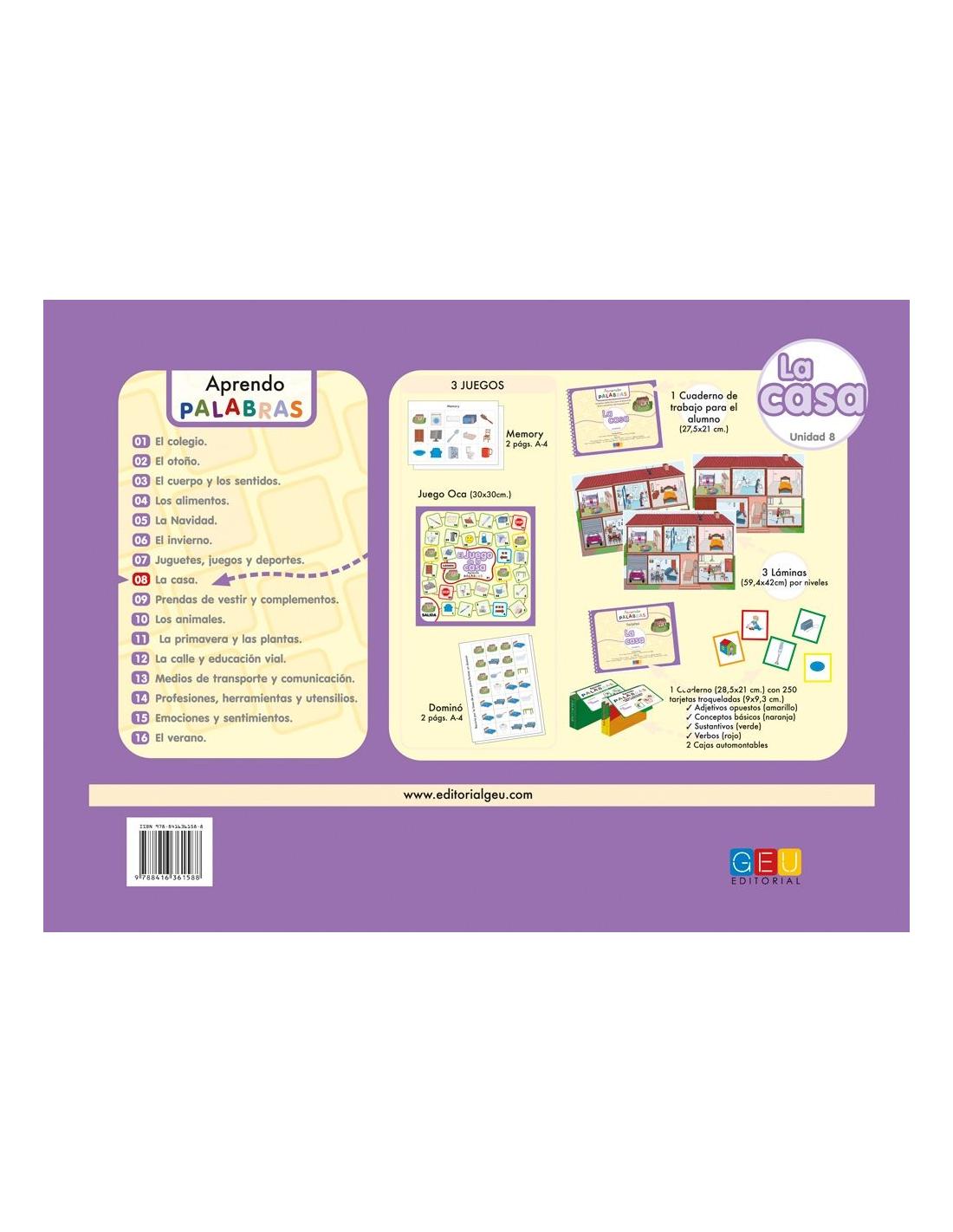 Aprendo palabras 8. La casa forma parte de la colección Aprendo palabras, un novedoso material que trabaja el aspecto léxico-semántico y morfosintáctico del lenguaje oral, tanto a nivel comprensivo como expresivo.