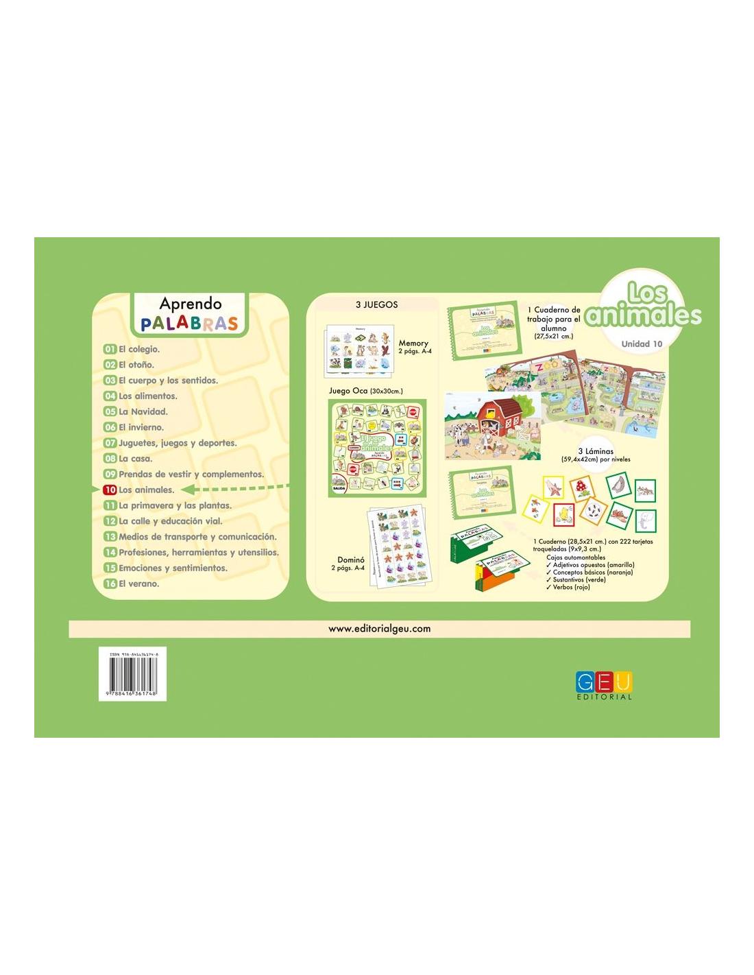 Aprendo palabras 10. Los animales forma parte de la colección Aprendo palabras, un novedoso material que trabaja el aspecto léxico-semántico y morfosintáctico del lenguaje oral, tanto a nivel comprensivo como expresivo.