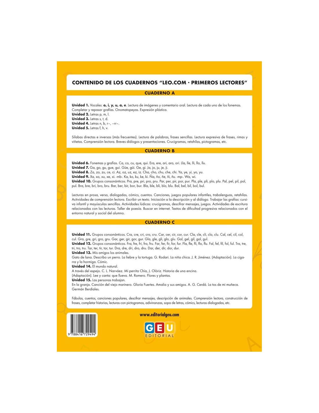 Leo.com C forma parte de una colección compuesta por 11 cuadernos que trabajan la comprensión lectora y la composición escrita, adaptándose perfectamente a la diversidad de ritmos de maduración y aprendizaje en el alumno.