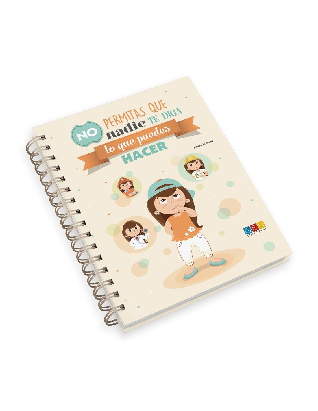 Libreta de tapa dura en formato A5 con la frase “No permitas que nadie te diga lo que puedes hacer”. La ilustración de la libreta tiene como protagonista a una niña que piensa y sueña en que quiere ser de mayor.