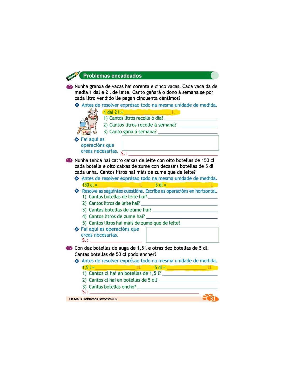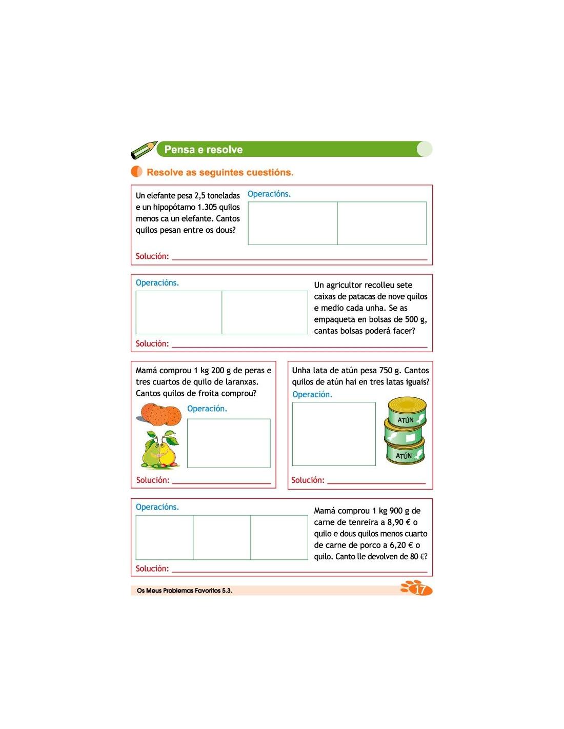 Os meus problemas favoritos 5.3 corresponde a 5º de Primaria y es la traduccion en gallego de la colección "Mis Problemas Favoritos", es una colección de 18 cuadernos de problemas, que parten de situaciones cotidianas con estrategias matemáticas que facilitan la resolución de problemas. Están diseñados en una secuencia progresiva de primero a sexto de Educación Primaria.