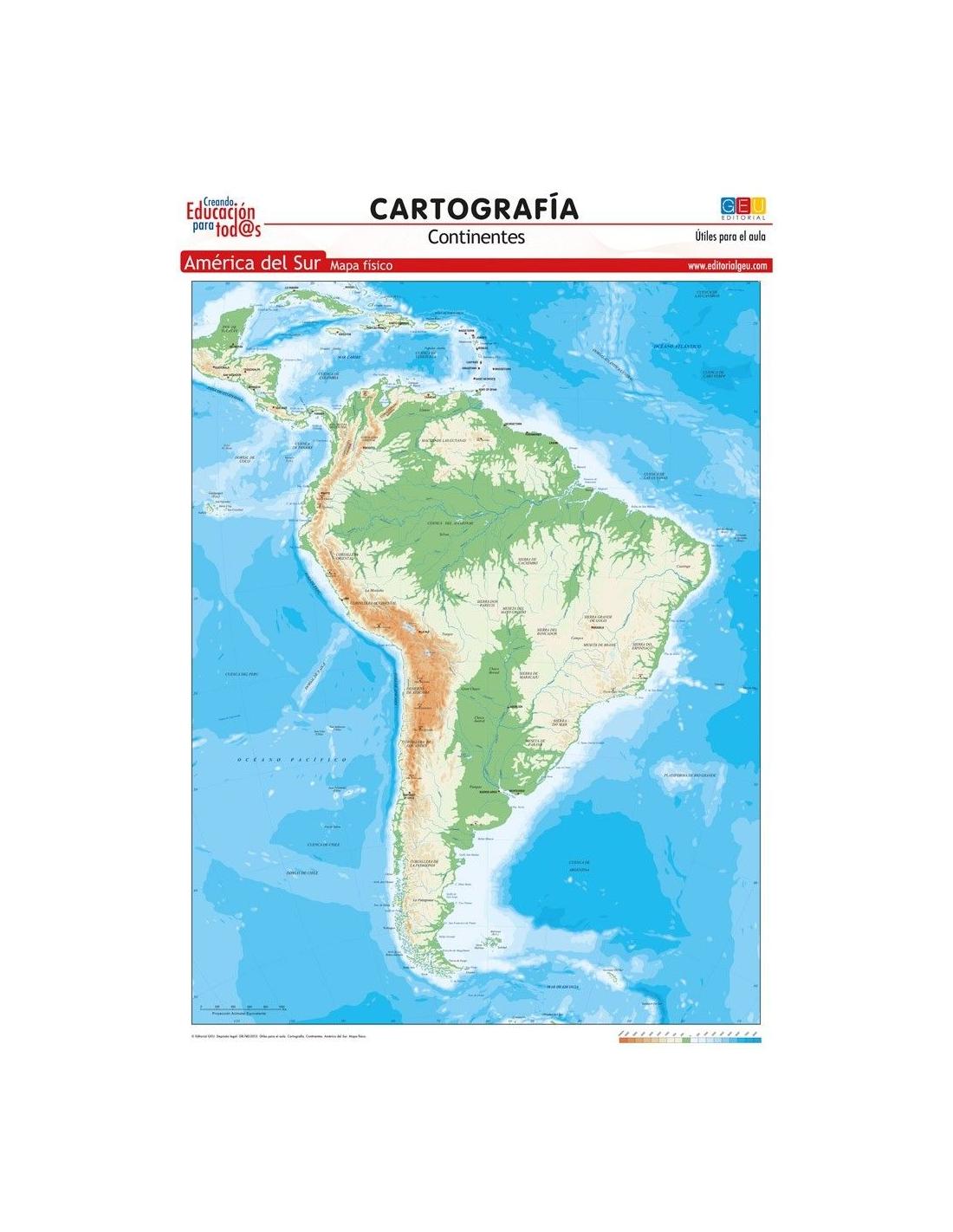 Mapa de América del Sur. Físico