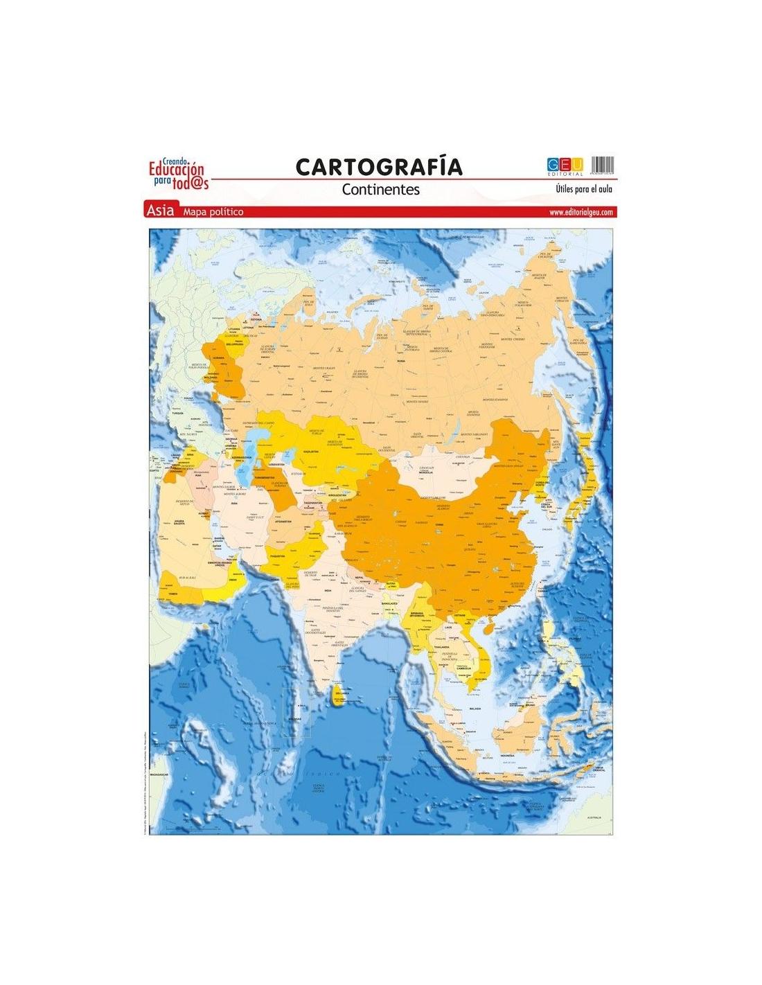 Mapa de Asia. Político, 1 lámina en alta calidad para aprender el continente asiático (político)