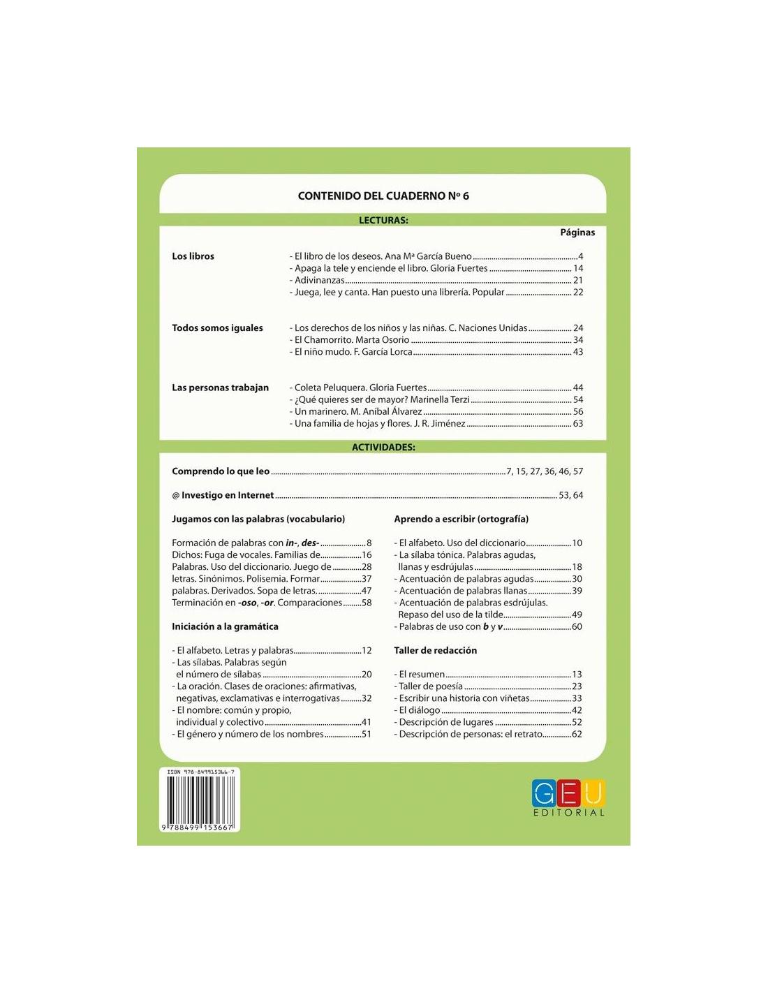 Leo.com 6 forma parte de una colección compuesta por 11 cuadernos que trabajan la comprensión lectora y la composición escrita, adaptándose perfectamente a la diversidad de ritmos de maduración y aprendizaje en el alumno.