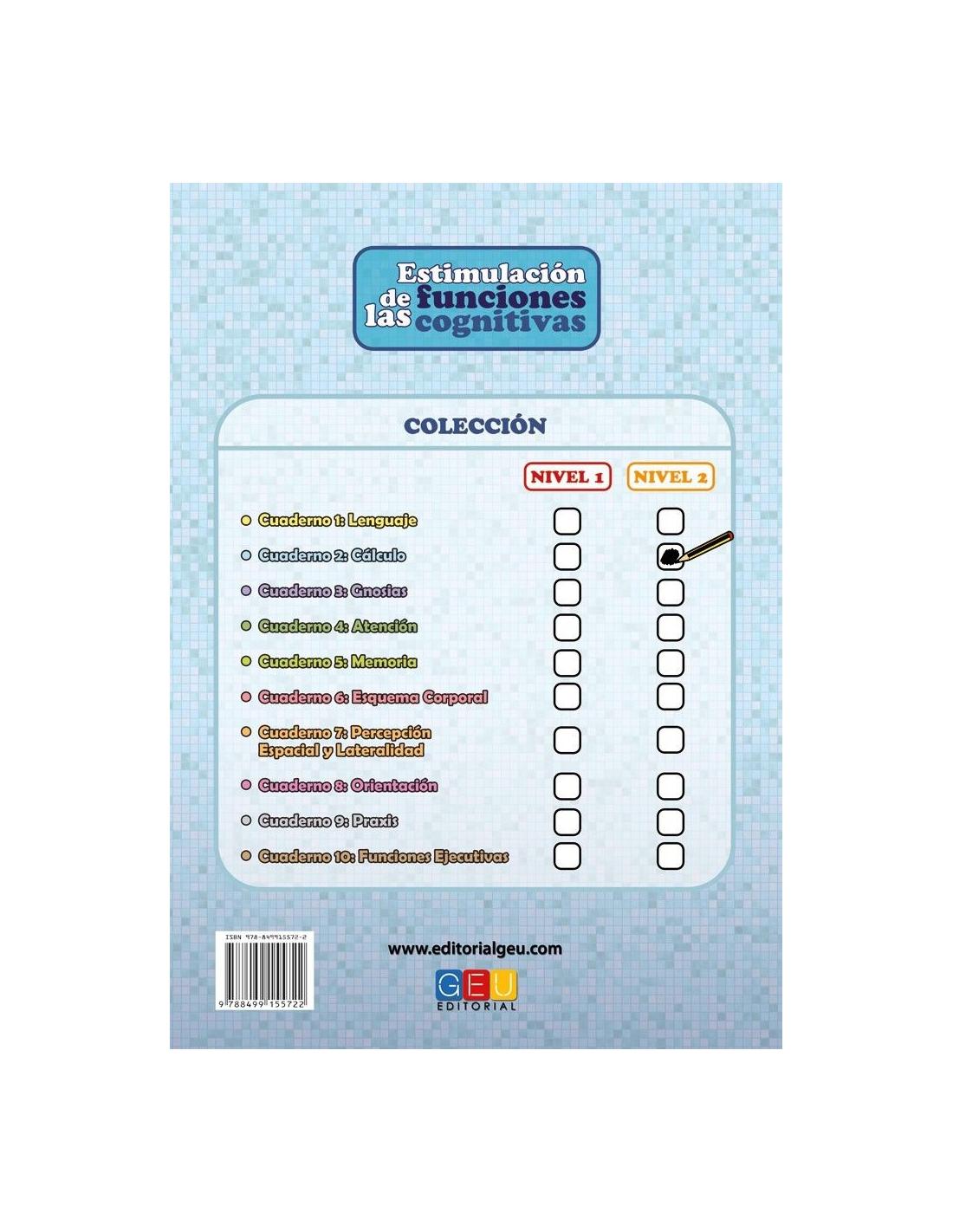 Estimulación de las funciones cognitivas. Cálculo nivel 2 forma parte de una colección compuesta por 20 cuadernos de trabajo diseñados como un Programa de Estimulación Cognitiva Integral para desarrollar las principales funciones cerebrales.