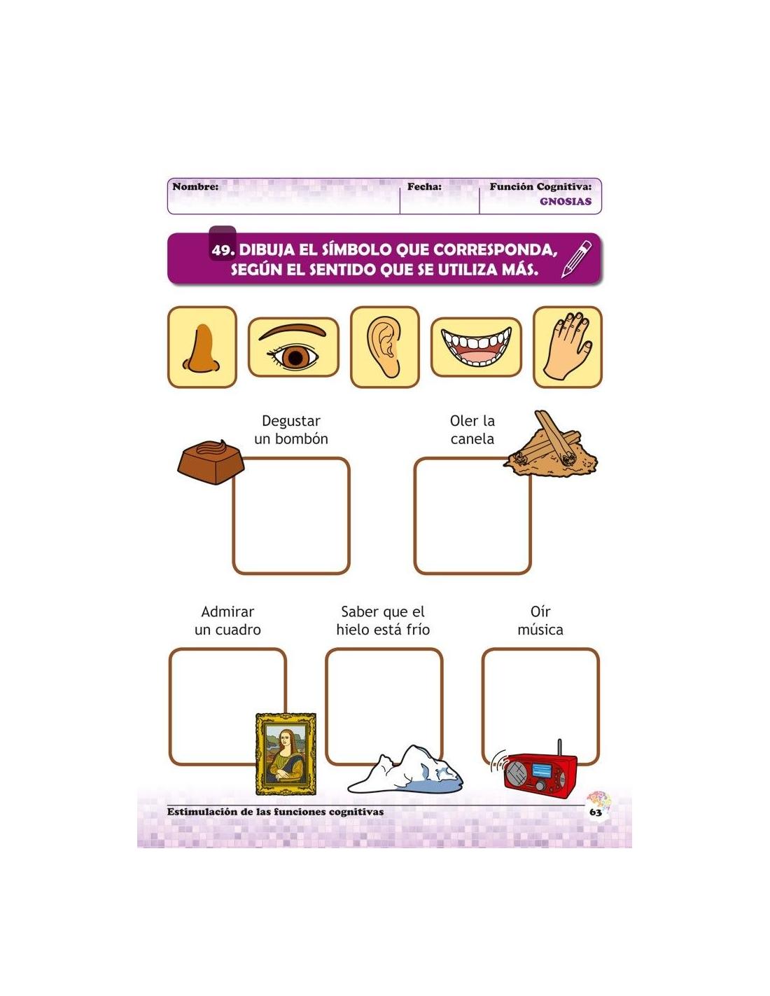 Estimulación de las funciones cognitivas. Gnosias nivel 2 forma parte de una colección compuesta por 20 cuadernos de trabajo diseñados como un Programa de Estimulación Cognitiva Integral para desarrollar las principales funciones cerebrales.