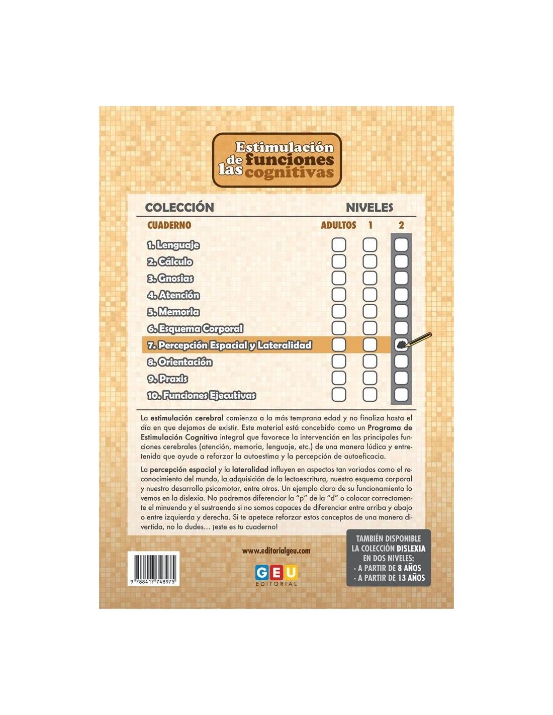Estimulación de las funciones cognitivas. Percepción espacial y lateralidad nivel 2 forma parte de una colección de cuadernos de trabajo diseñados como un Programa de Estimulación Cognitiva integral para desarrollar las principales funciones cerebrales.