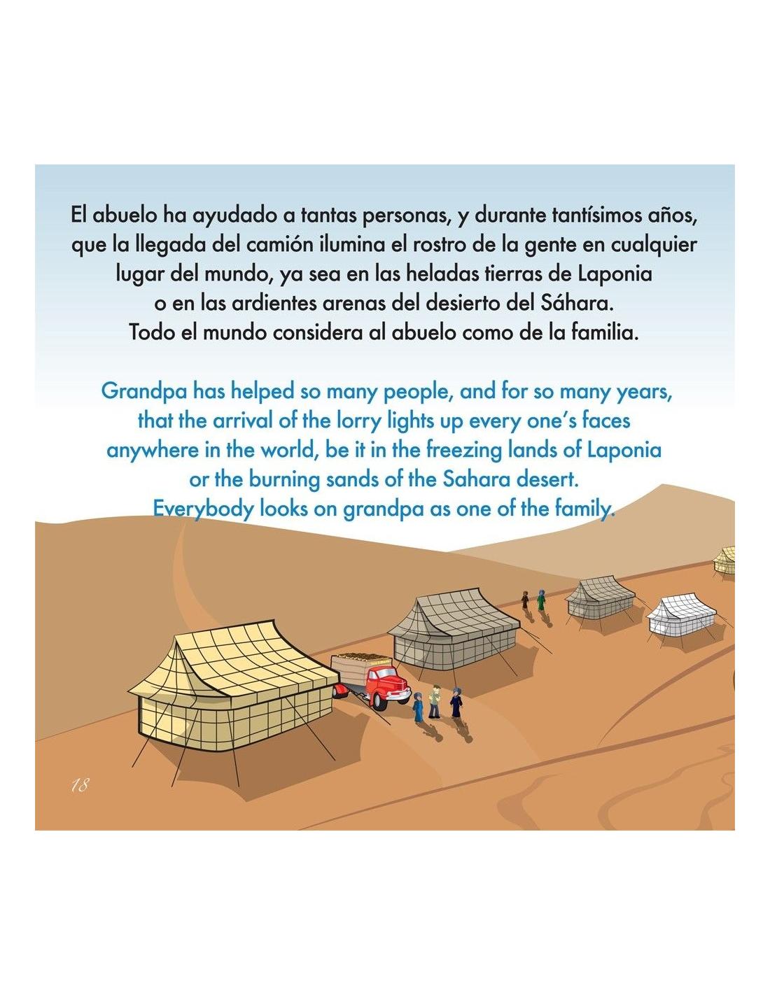 También pretende el abuelo, con su mirada sabia y bondadosa, descubrirnos el encanto de lo cotidiano y dar un sentido homenaje a los cuentos de siempre, cuyas enseñanzas nos han ayudado a crecer desde los tiempos más remotos. En esta historia, conoceremos las aventuras del abuelo y su camión, María y su nueva hermanita Sara.
