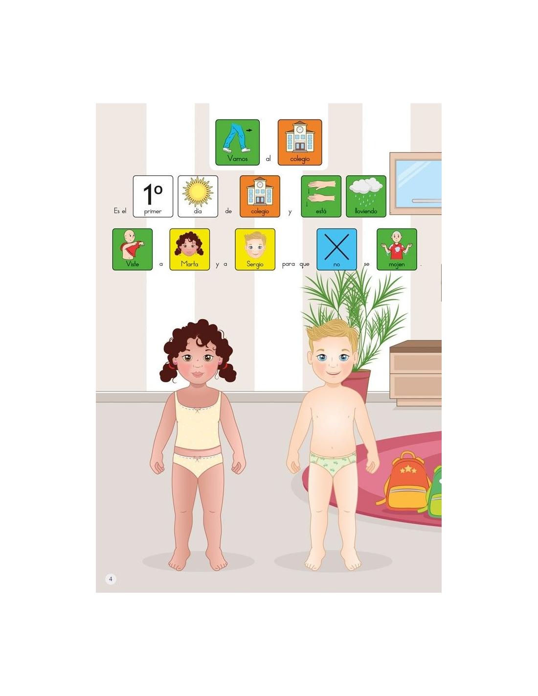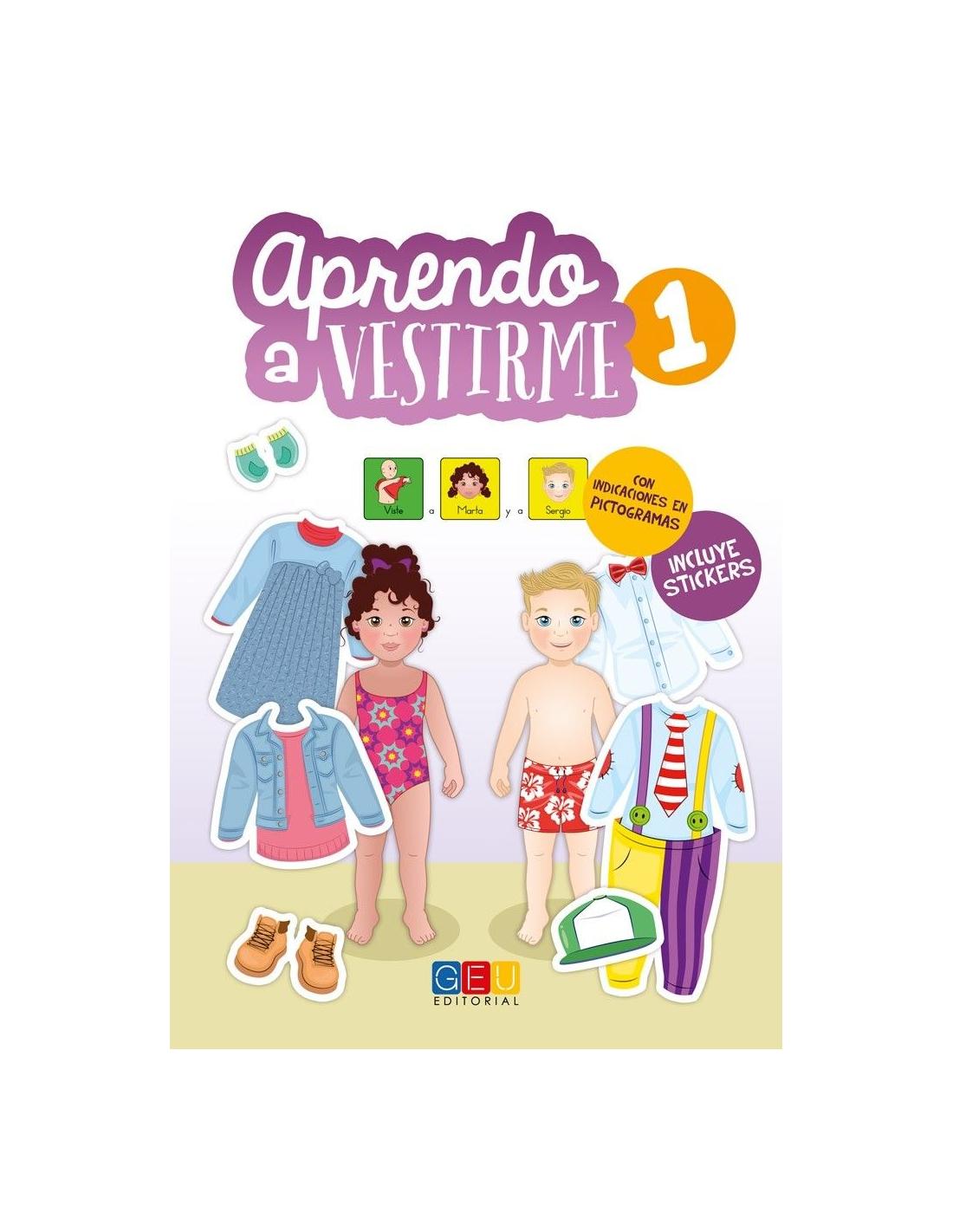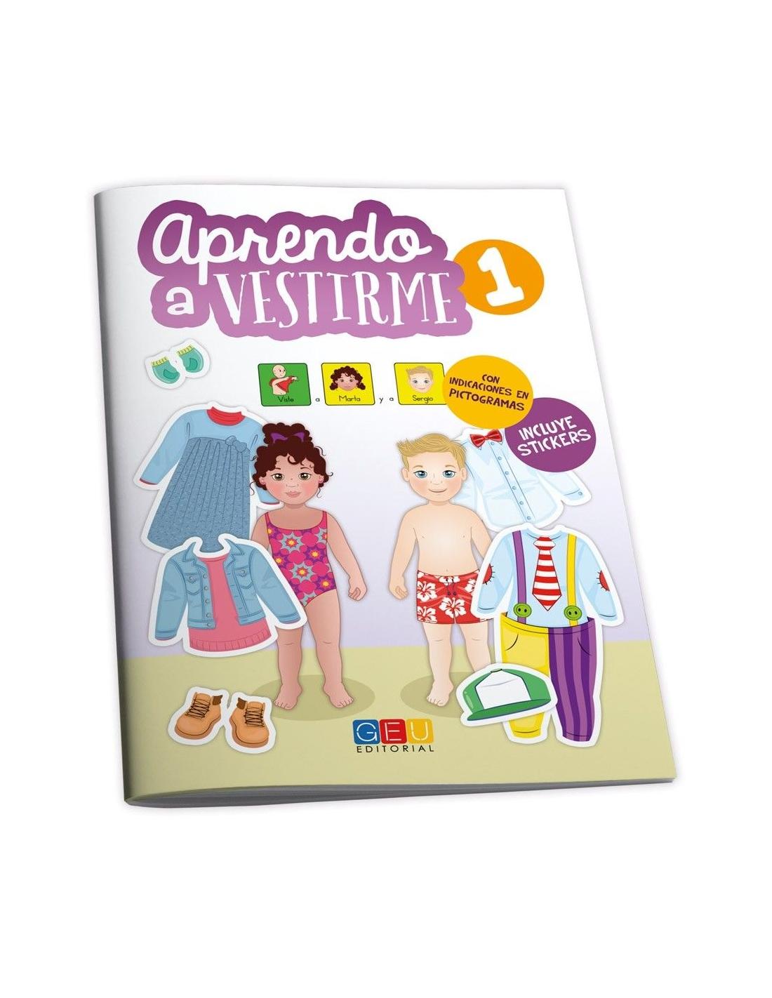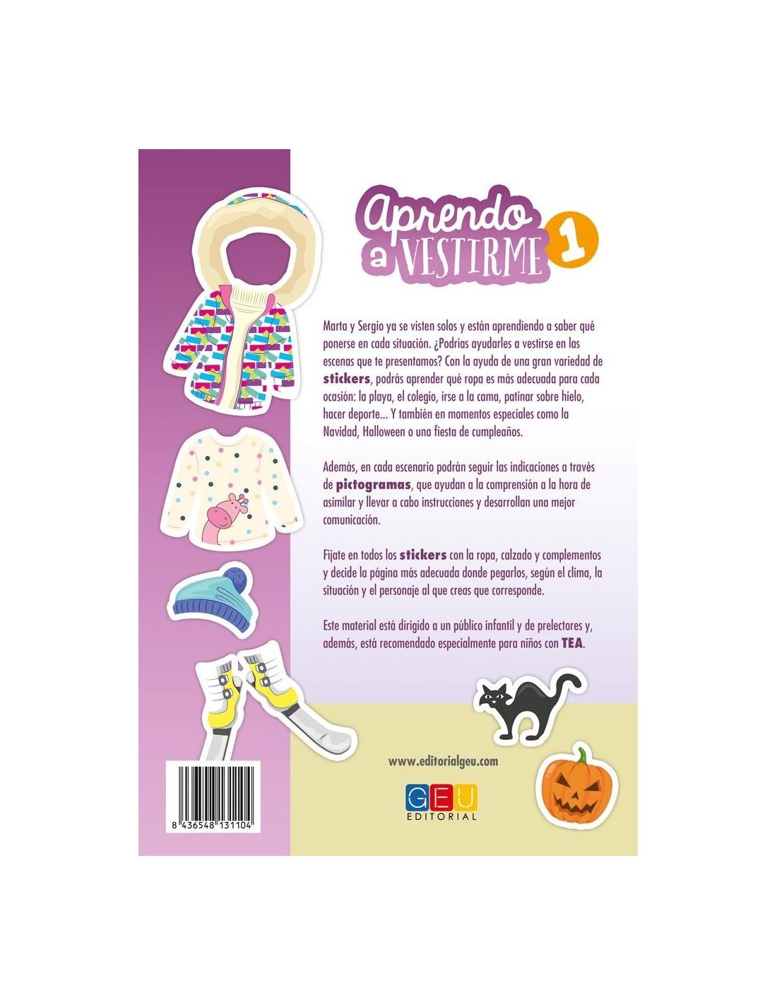 Con Aprendo a vestirme dispondrán de ocho páginas de pegatinas a todo color, con preciosas ilustraciones que muestran las épocas del año, fechas señaladas y acontecimientos importantes. Sus protagonistas, Marta y Sergio, están aprendiendo a vestirse solitos para cada situación. ¿Les ayudarás a vestirse en las escenas que te presentamos?