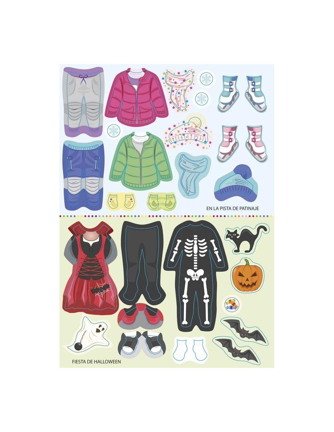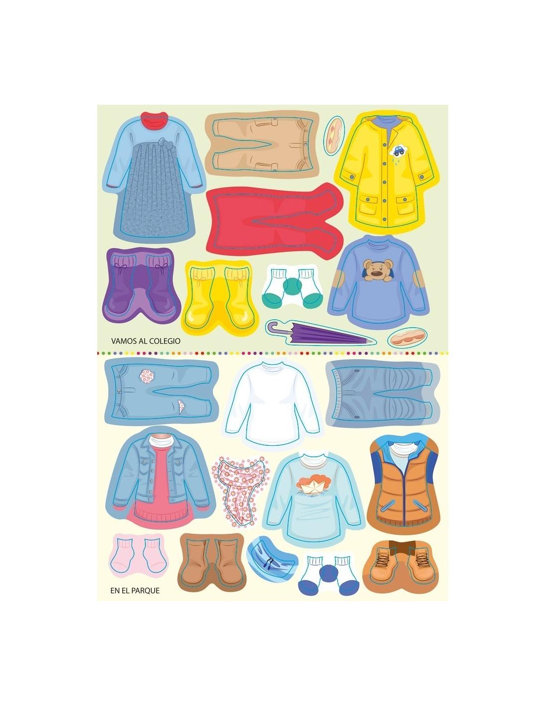 La atractiva actividad que supone la manipulación de los stickers con el cuaderno supondrá un apoyo para que los más pequeños aprendan algo tan cotidiano como vestirse para cada situación.