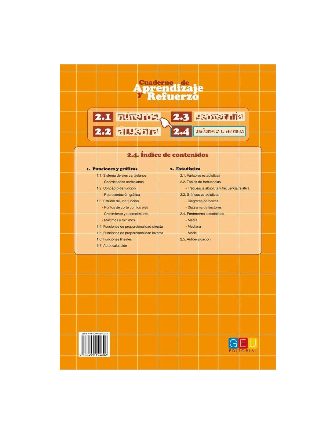 Cuaderno de aprendizaje y refuerzo 2.4 forma parte de una colección compuesta por 8 cuadernos especialmente desarrollados para reforzar y repasar los contenidos más importantes del primer ciclo de la ESO.
