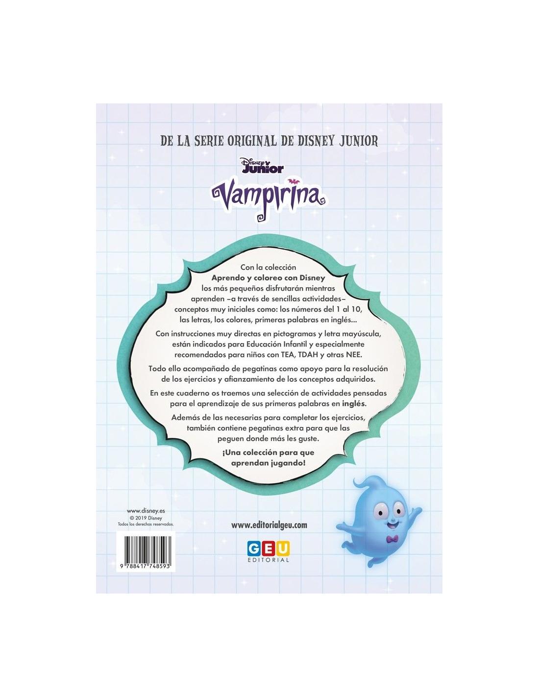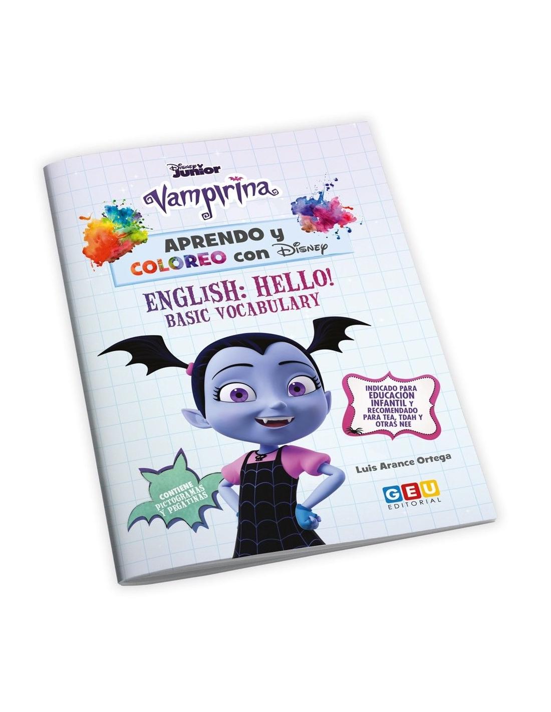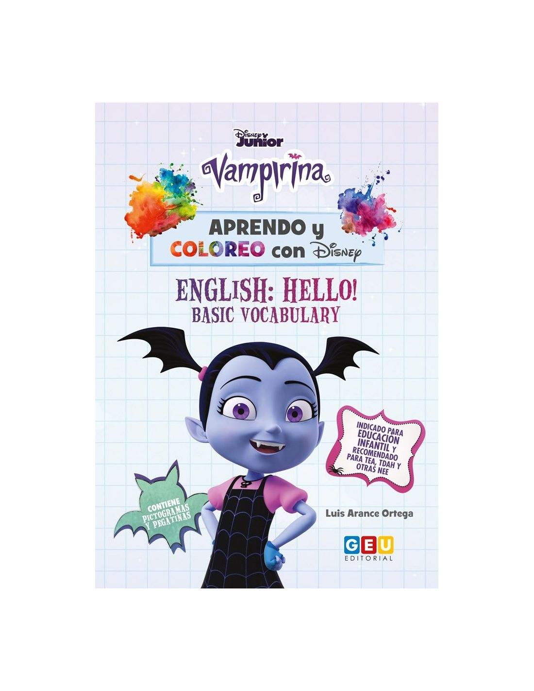 Aprendo y coloreo con Disney. Vampirina. English: Hello! Basic vocabulary es un cuaderno con el que los más pequeños podrán disfrutar mientras aprenden. Se trata de un material de ocio educativo con el que colorearán sus personajes favoritos. En este cuaderno en concreto, el divertido mundo de Vampirina.