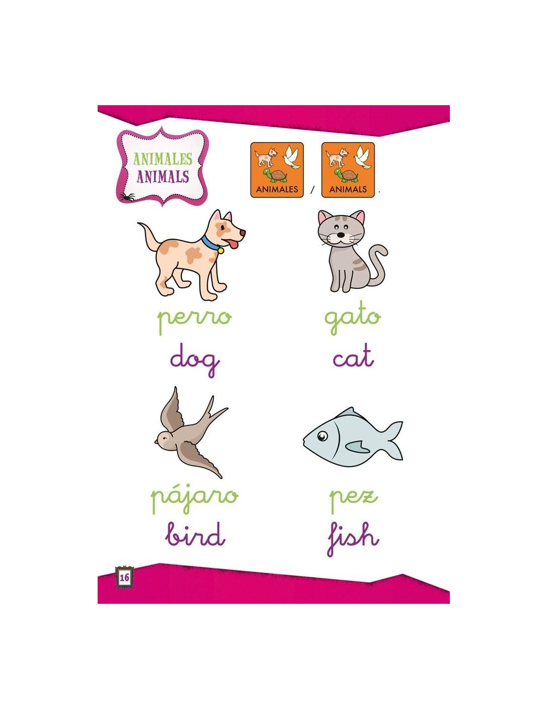 Cuaderno para colorear y, al mismo tiempo, aprender vocabulario básico en inglés.