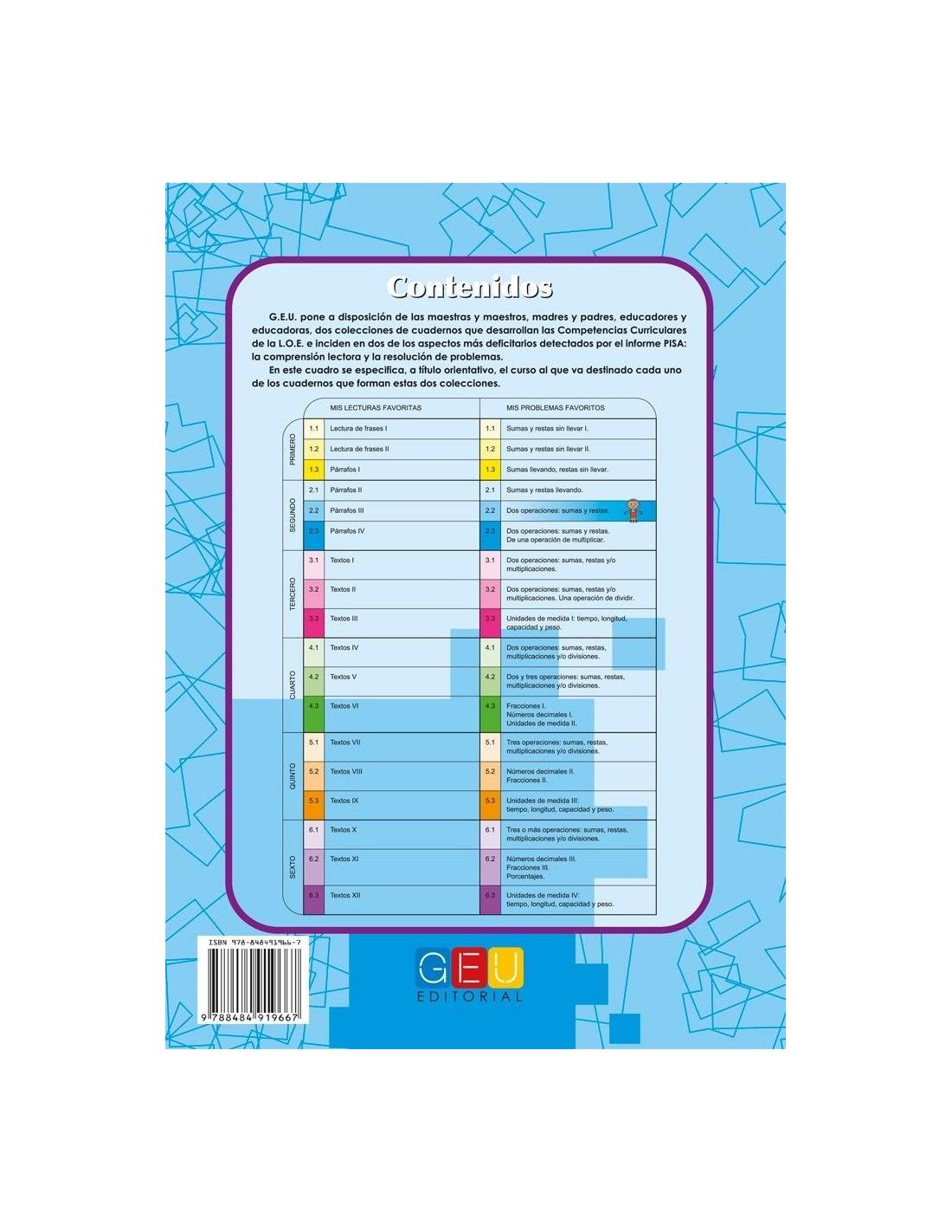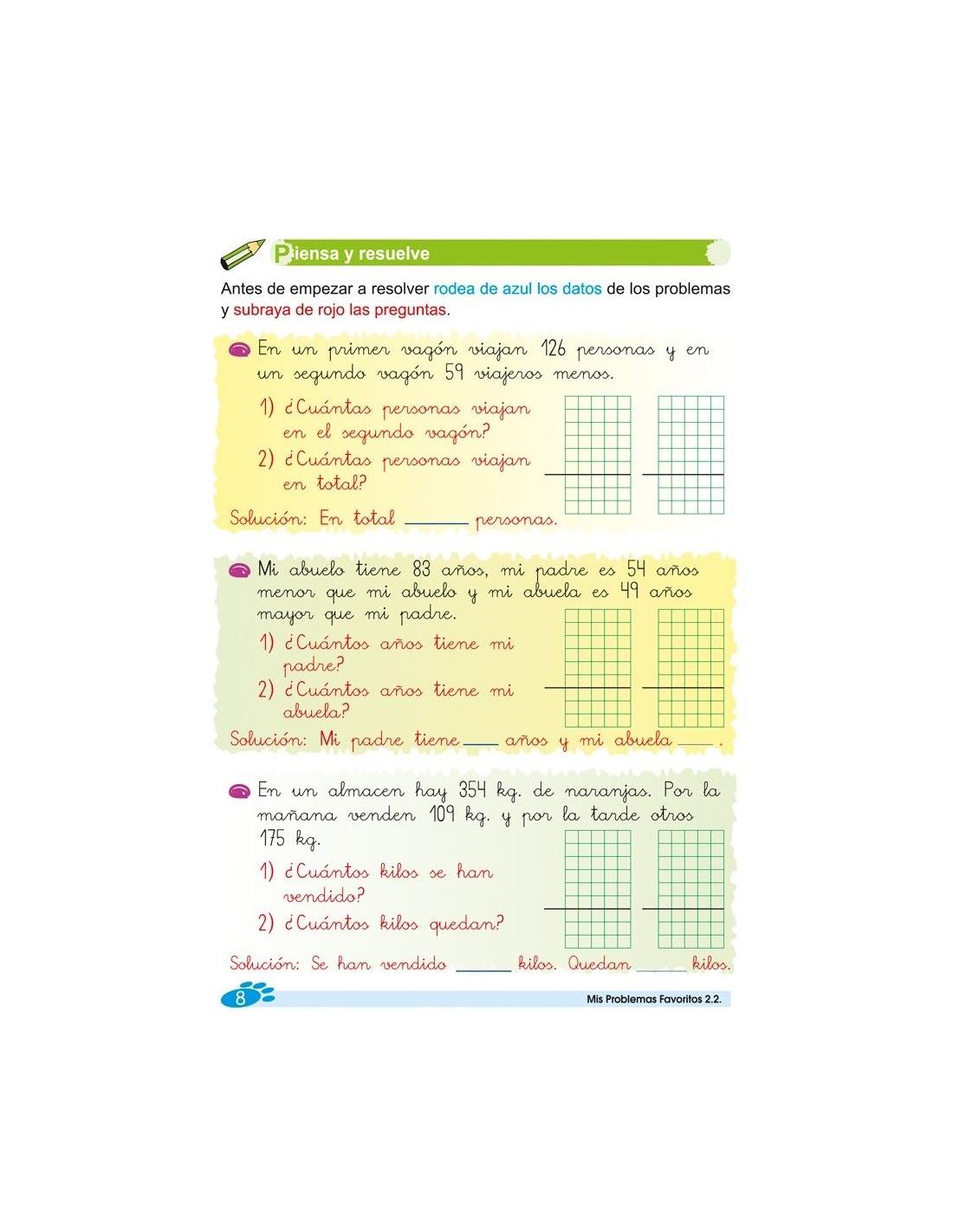 Mis problemas favoritos 2.2 forma parte de una colección compuesta por 18 cuadernos de actividades, diseñados en una secuencia progresiva de 1º a 6º de Primaria.