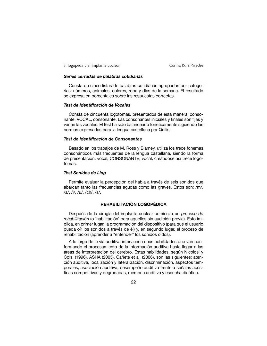 Manual desarrollado pensando en la rehabilitación integral del paciente adulto portador de un implante coclear. También, puede ser utilizado en pacientes adultos usuarios de audífonos u otros que desean estimular oportunamente su procesamiento auditivo central.