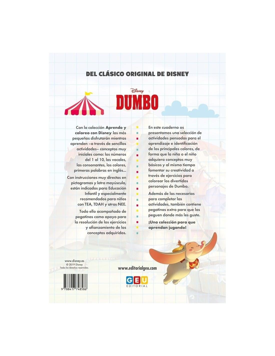 Aprendo y coloreo con Disney. DUMBO. Los colores es un cuaderno con el que los más pequeños podrán disfrutar mientras aprenden. Se trata de un material de ocio educativo con el que colorearán sus personajes favoritos. En este cuaderno en concreto, el clásico de Disney DUMBO.
