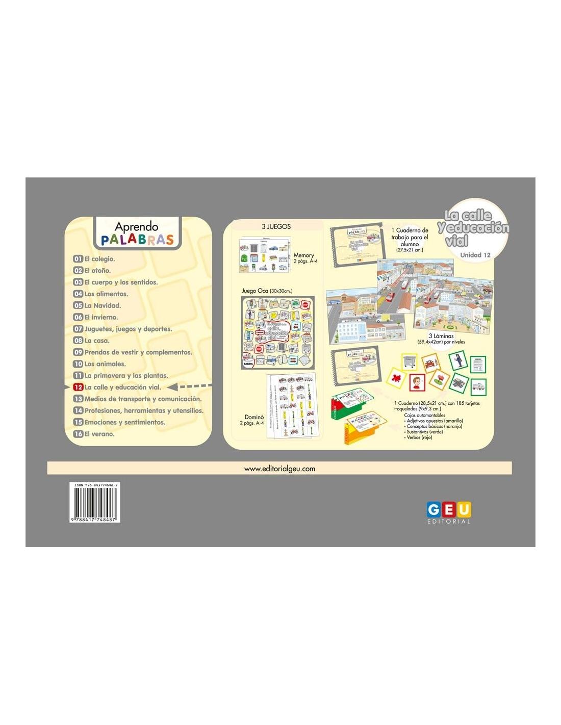 Aprendo palabras 12. La calle y educación vial forma parte de la colección Aprendo palabras, un novedoso material que trabaja el aspecto léxico-semántico y morfosintáctico del lenguaje oral, tanto a nivel comprensivo como expresivo.