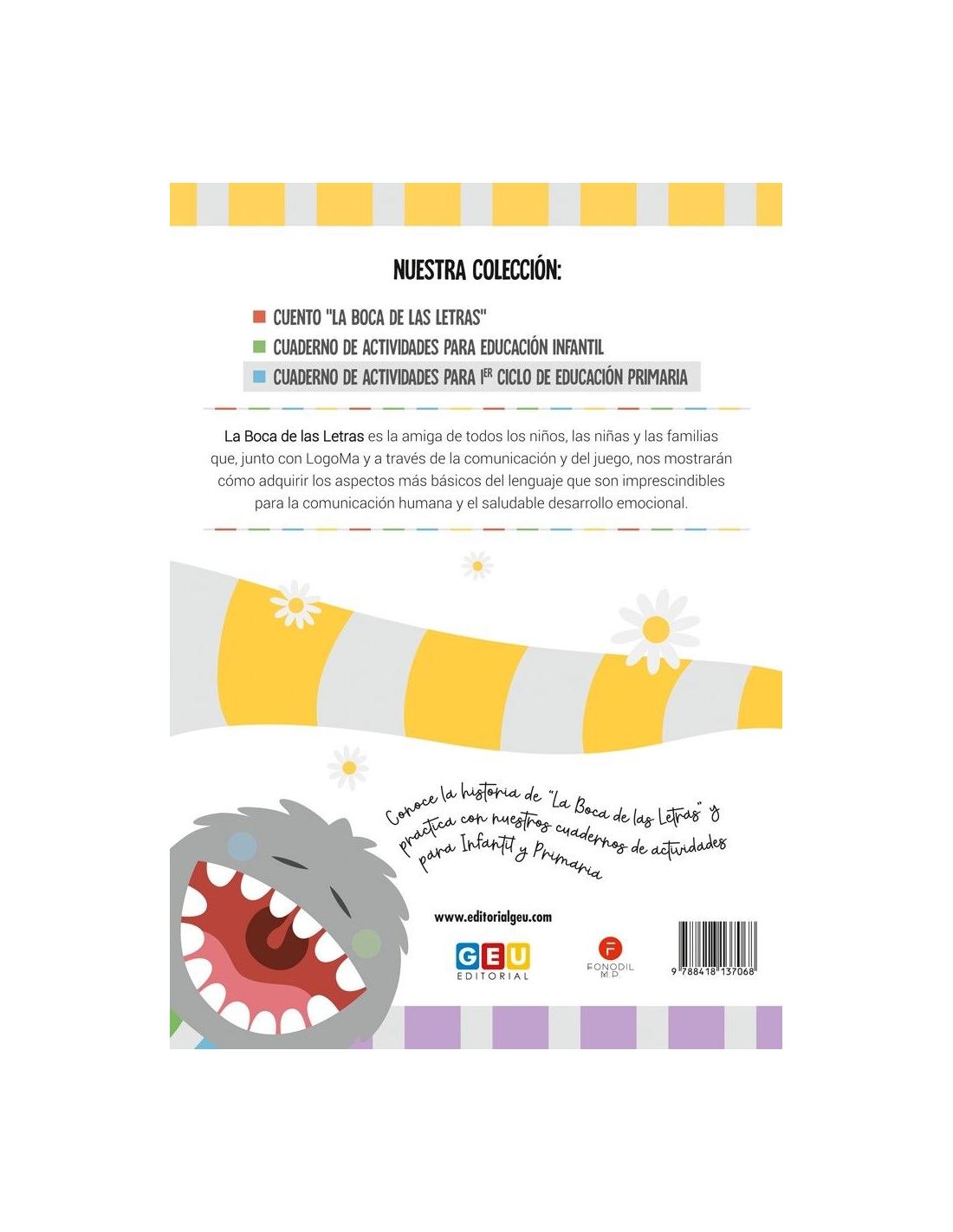 Con el cuaderno de actividades para 1er Ciclo de Educación Primaria de La Boca de las Letras trabajarán y aprenderán los aspectos más básicos del lenguaje y adquirirán un saludable desarrollo emocional a través de la comunicación y el juego.