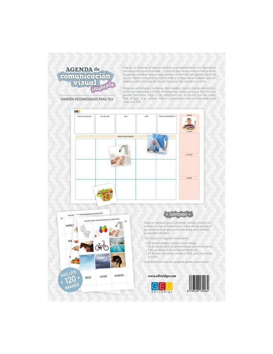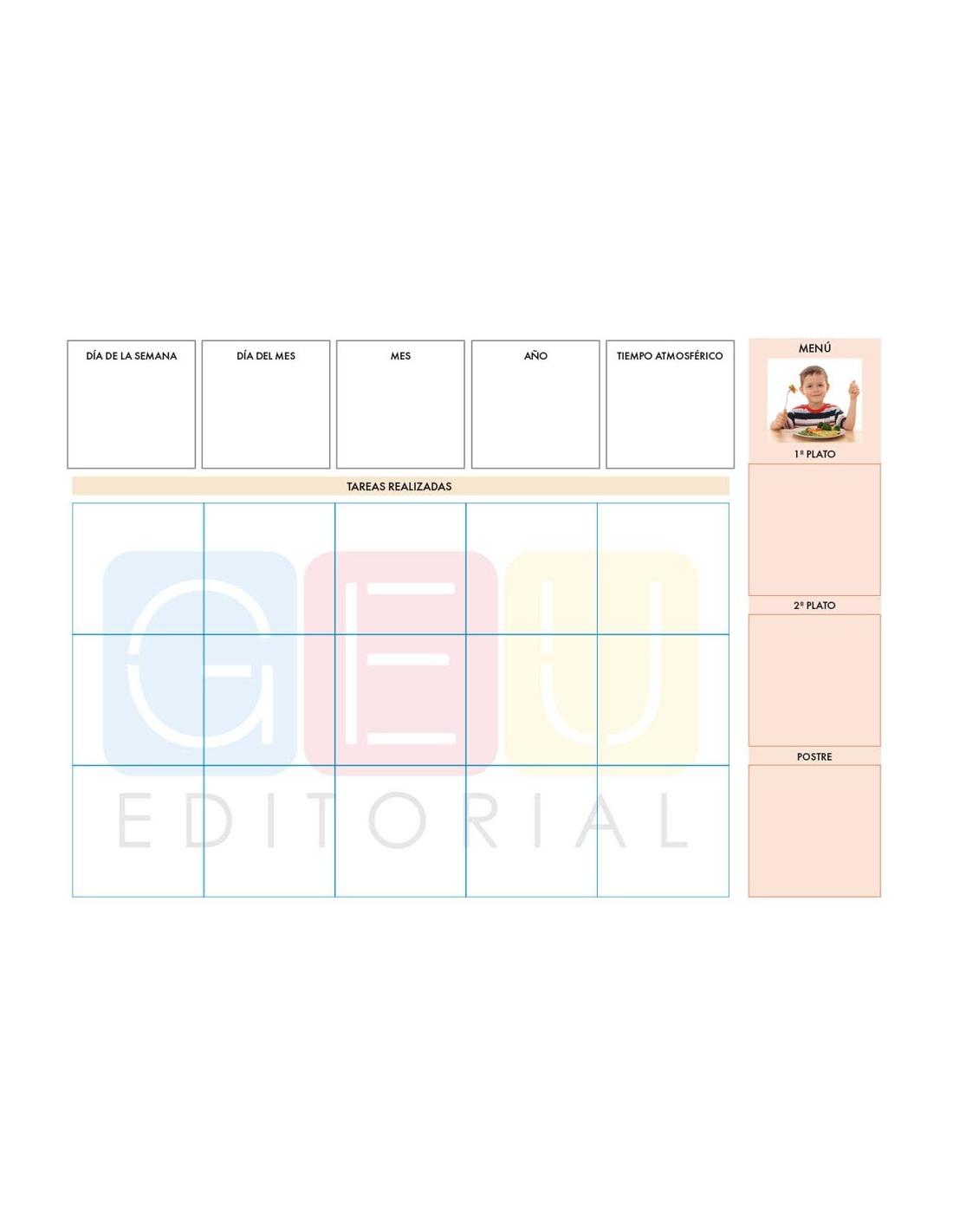 Soporte magnético para el profesor, donde colocará los imanes con las actividades y el menú del día para que los alumnos lo tengan como referencia para rellenar su agenda individual.