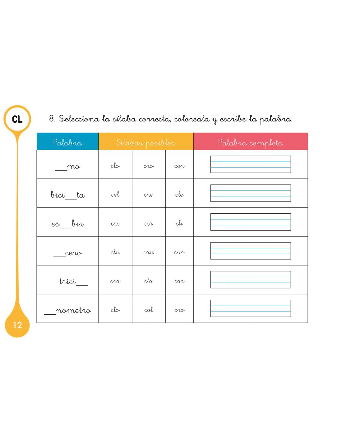 Descubre la colección "Sílabas trabadas", una serie de cuadernos para trabajar de forma individual las sílabas trabadas, en este caso, cl/cr.