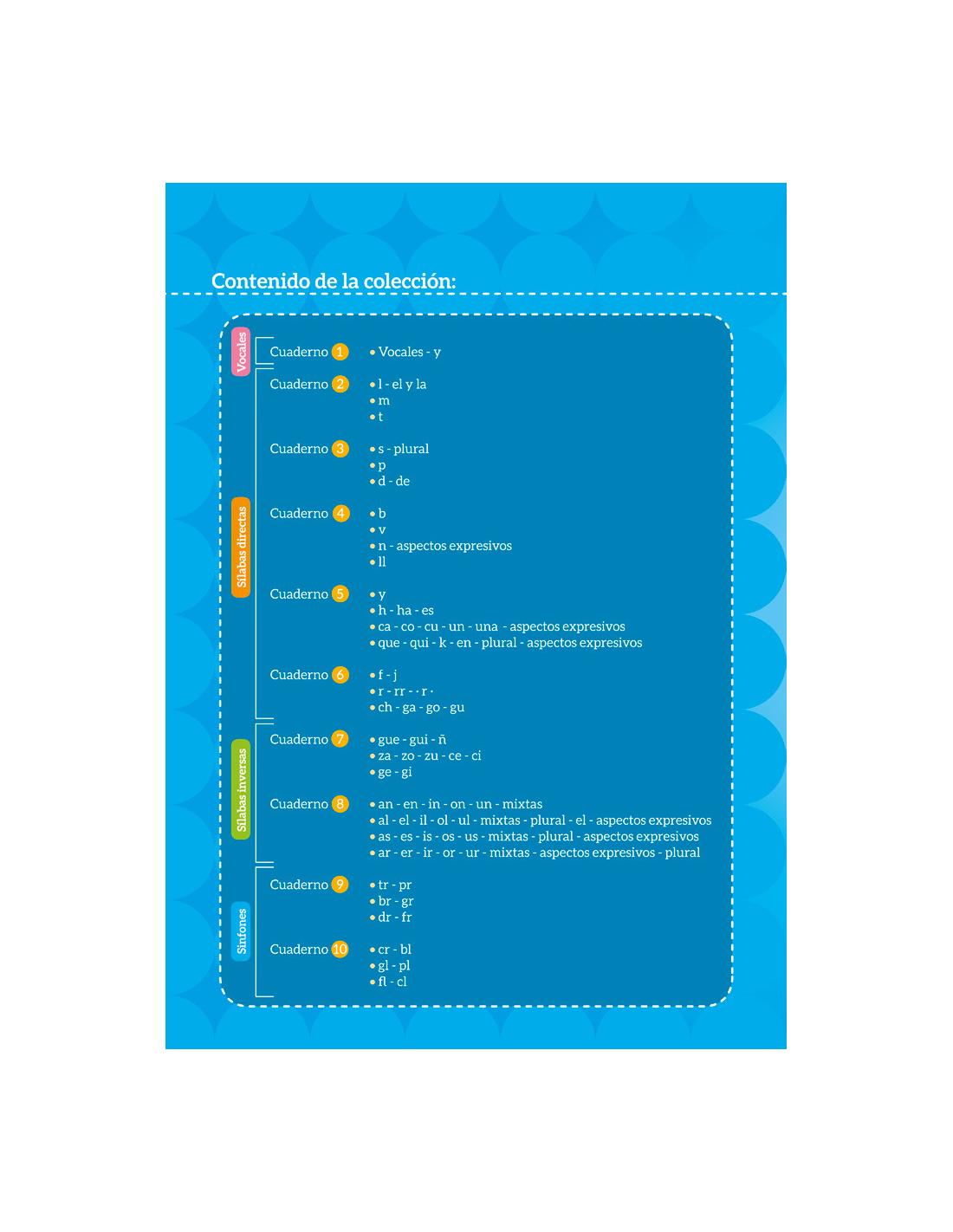 - 2 cuadernillos azules: sílabas con sinfones.