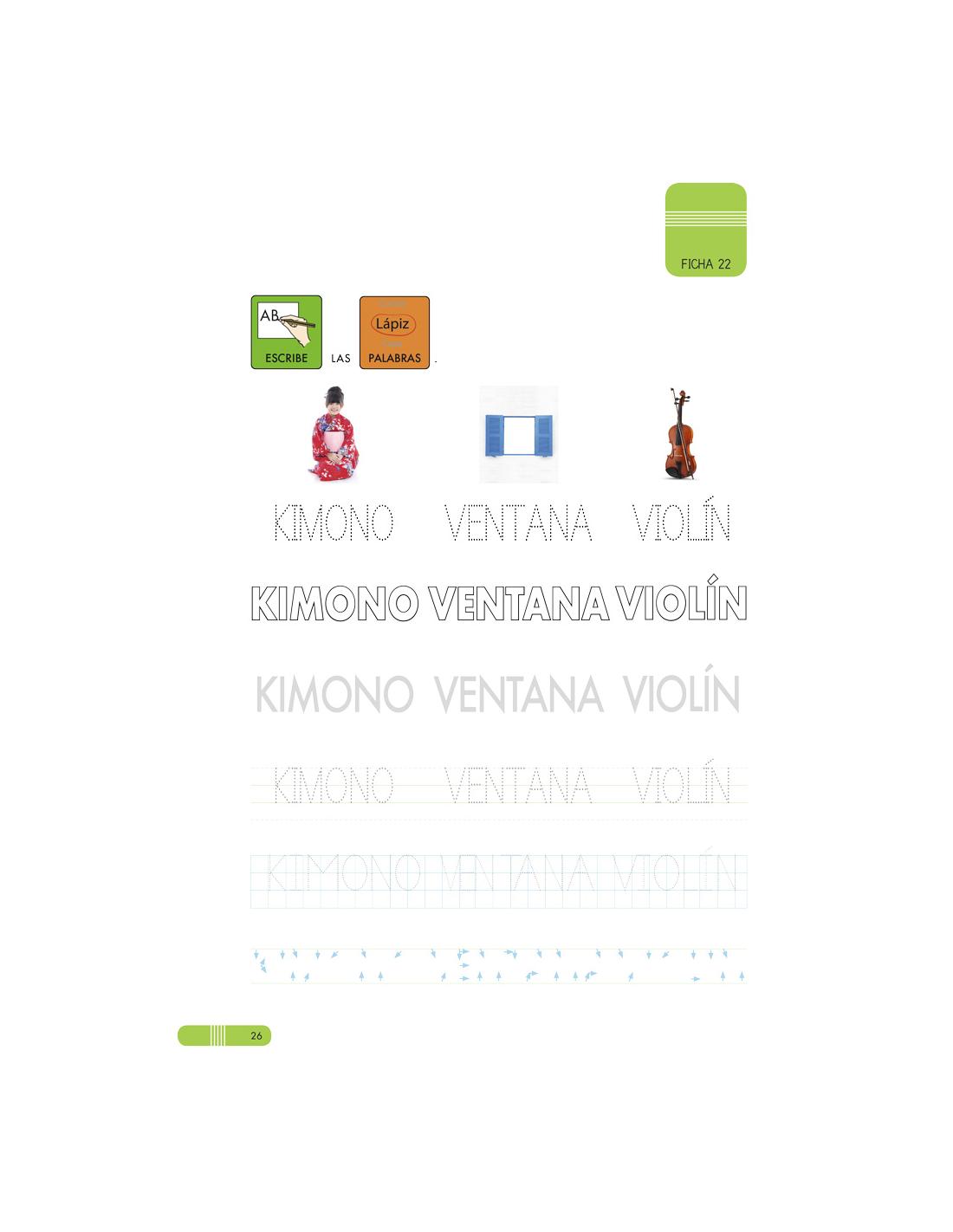 - Las fichas tienen como criterio principal la realización del trazado: asociando la grafía con la forma y significado de la palabra.