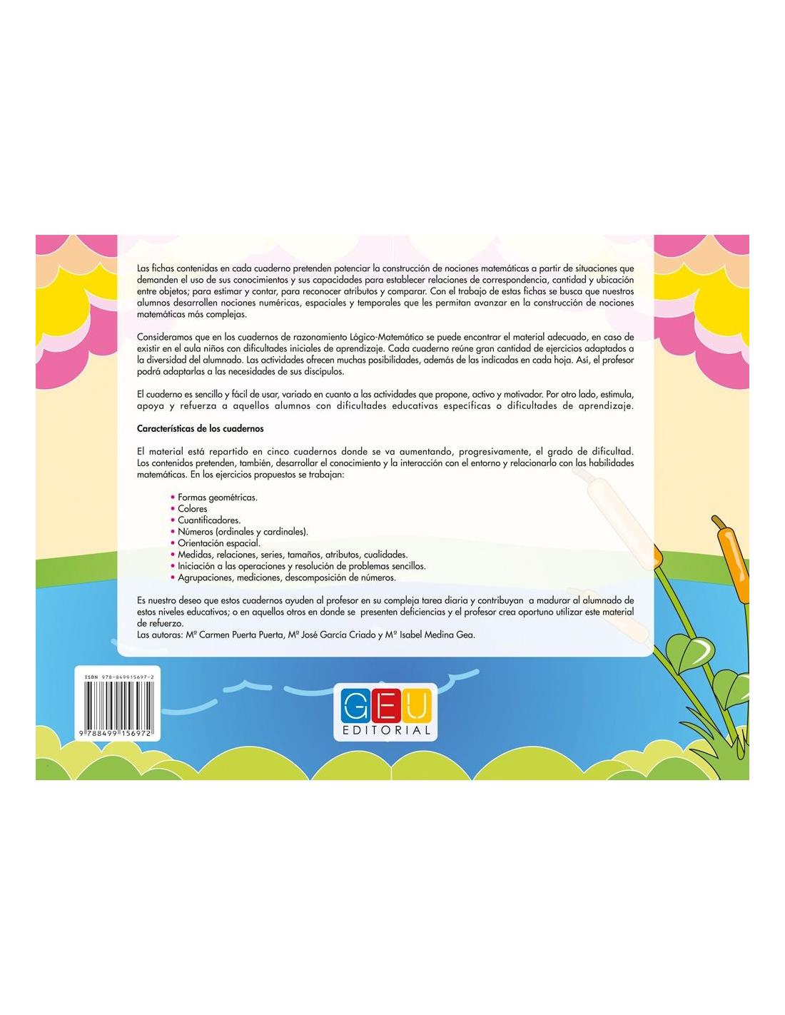 Razonamiento lógico matemático. Cuaderno 3 forma parte de una colección compuesta por 5 cuadernos que estimulan el razonamiento lógico matemático del niño.