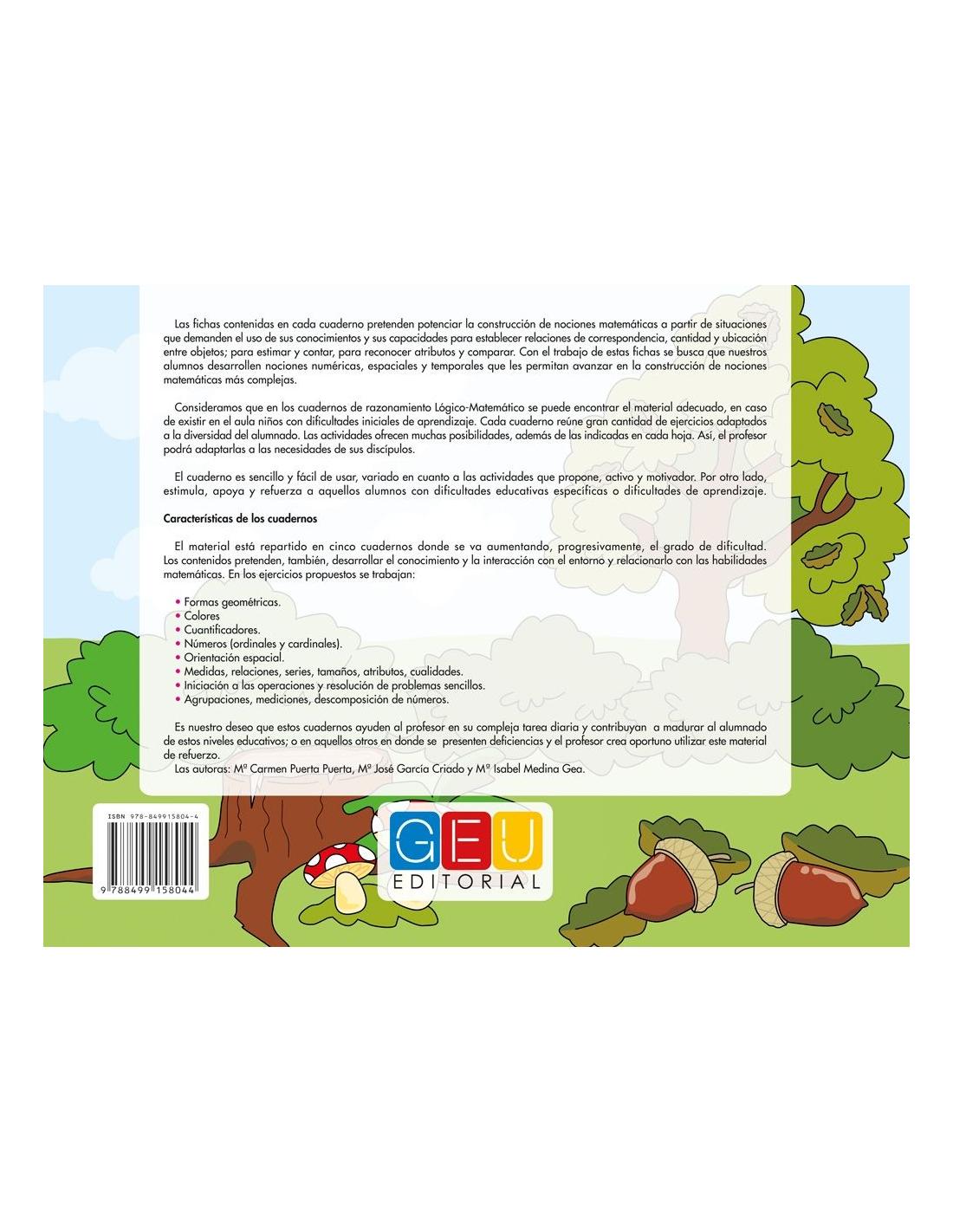 Razonamiento lógico matemático. Cuaderno 4 forma parte de una colección compuesta por 5 cuadernos que estimulan el razonamiento lógico matemático del niño.