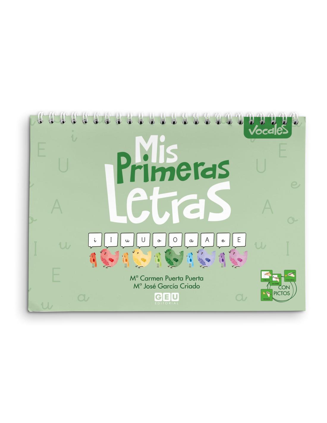 Mis primeras letras. Vocales forma parte de una colección compuesta por 5 cuadernillos de trabajo diseñada para facilitar el aprendizaje en el desarrollo inicial de la escritura.