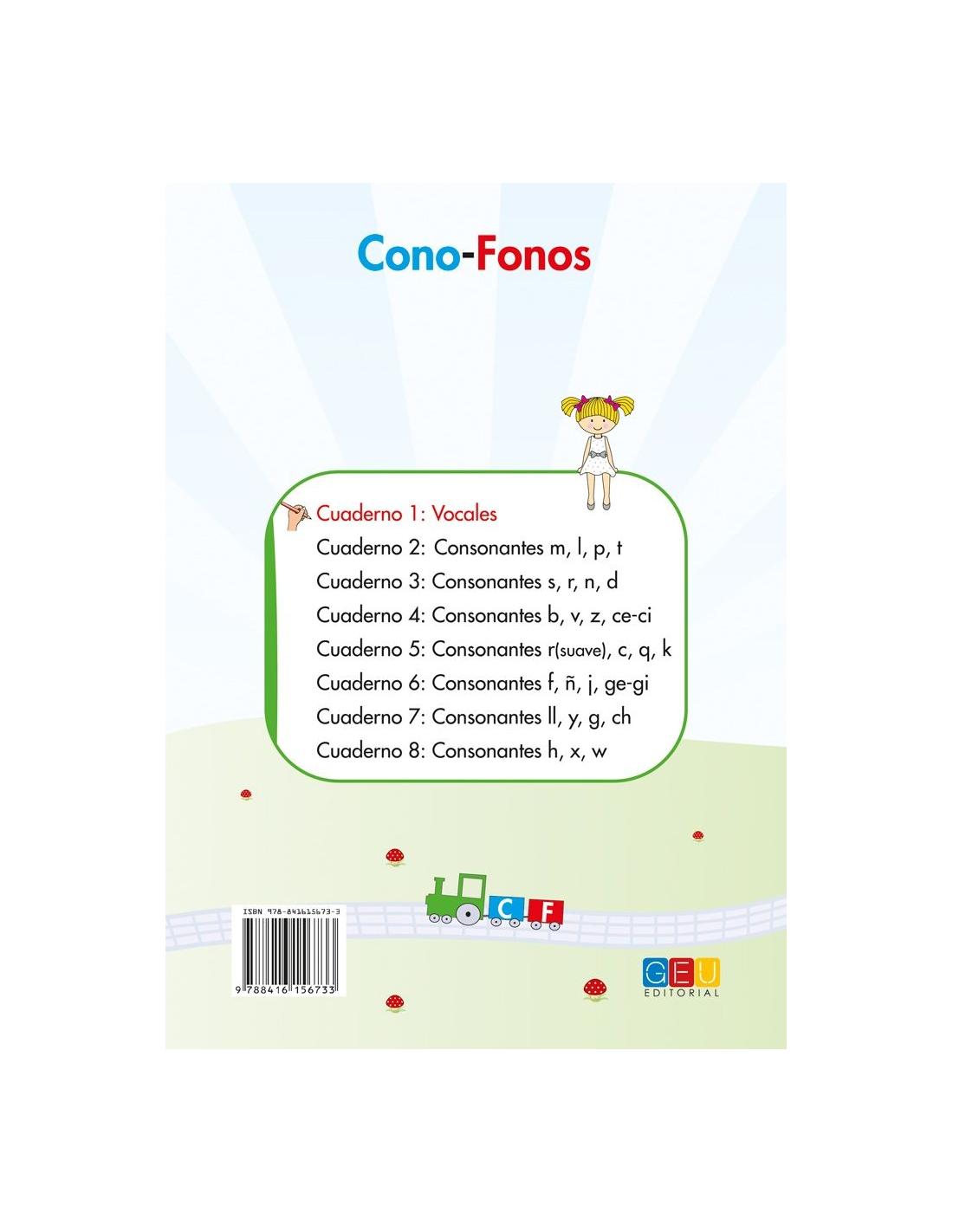 Cono-Fonos 3: ¡Sé leer y escribir! Cuaderno 1: Vocales forma parte de una colección de 8 cuadernos de enseñanza-aprendizaje de la lectoescritura, mediante una secuencia acumulativa de fonemas, onomatopeyas, apoyo articulatorio y grafemas.