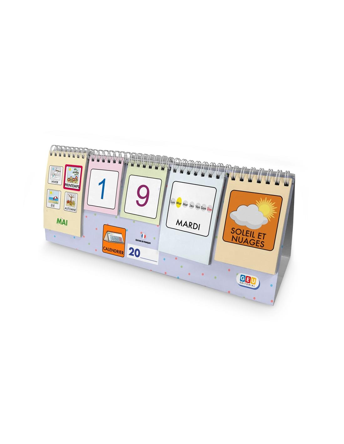 Nous vous présentons le moyen le plus simple pour apprendre les mois de l’année, les saisons, les jours et la météo. Avec le nouveau picto-calendrier de table, les enfants apprendront en jouant avec des fiches et en construisant des séquences de données complètes.